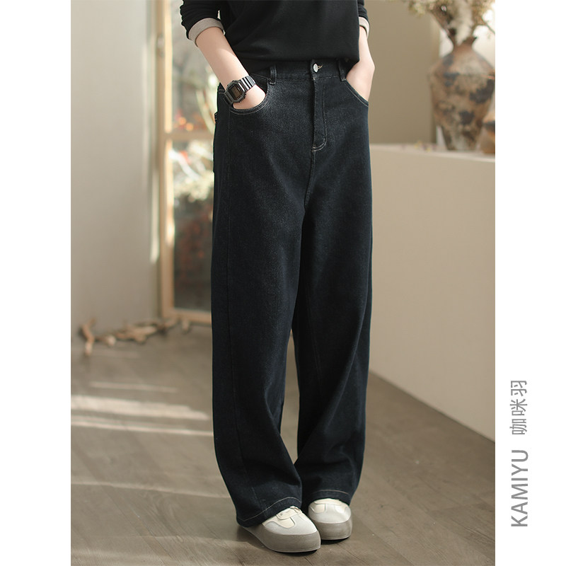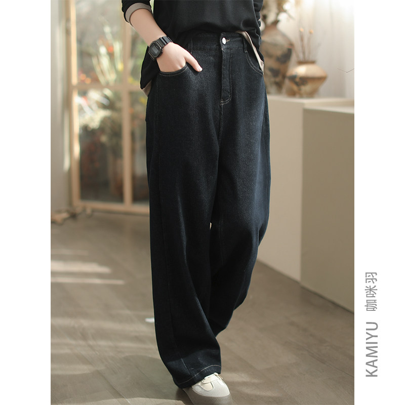 咖咪羽休闲裤女秋冬新款女士直筒宽松深蓝加厚内里磨毛女装哈伦裤