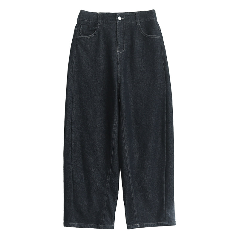 艾恩晟 2025早春美式宽松垂感牛仔阔腿裤深蓝色系慵懒风ins博主风