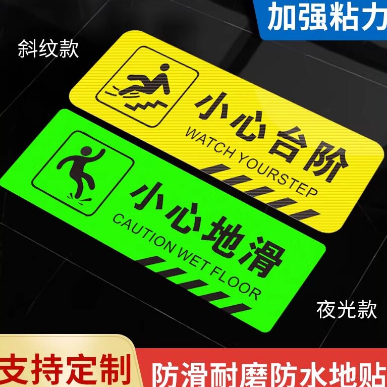 小心台阶地贴地滑温馨提示牌贴纸创意夜光墙贴注意脚下安全标识警示标语当心碰头玻璃洗手间指示牌子广告定制