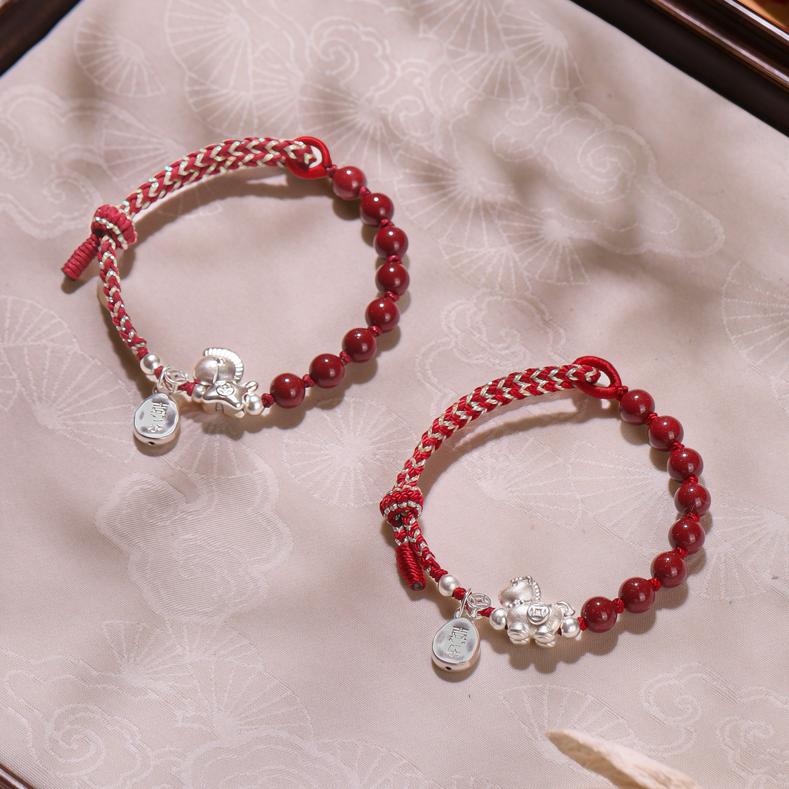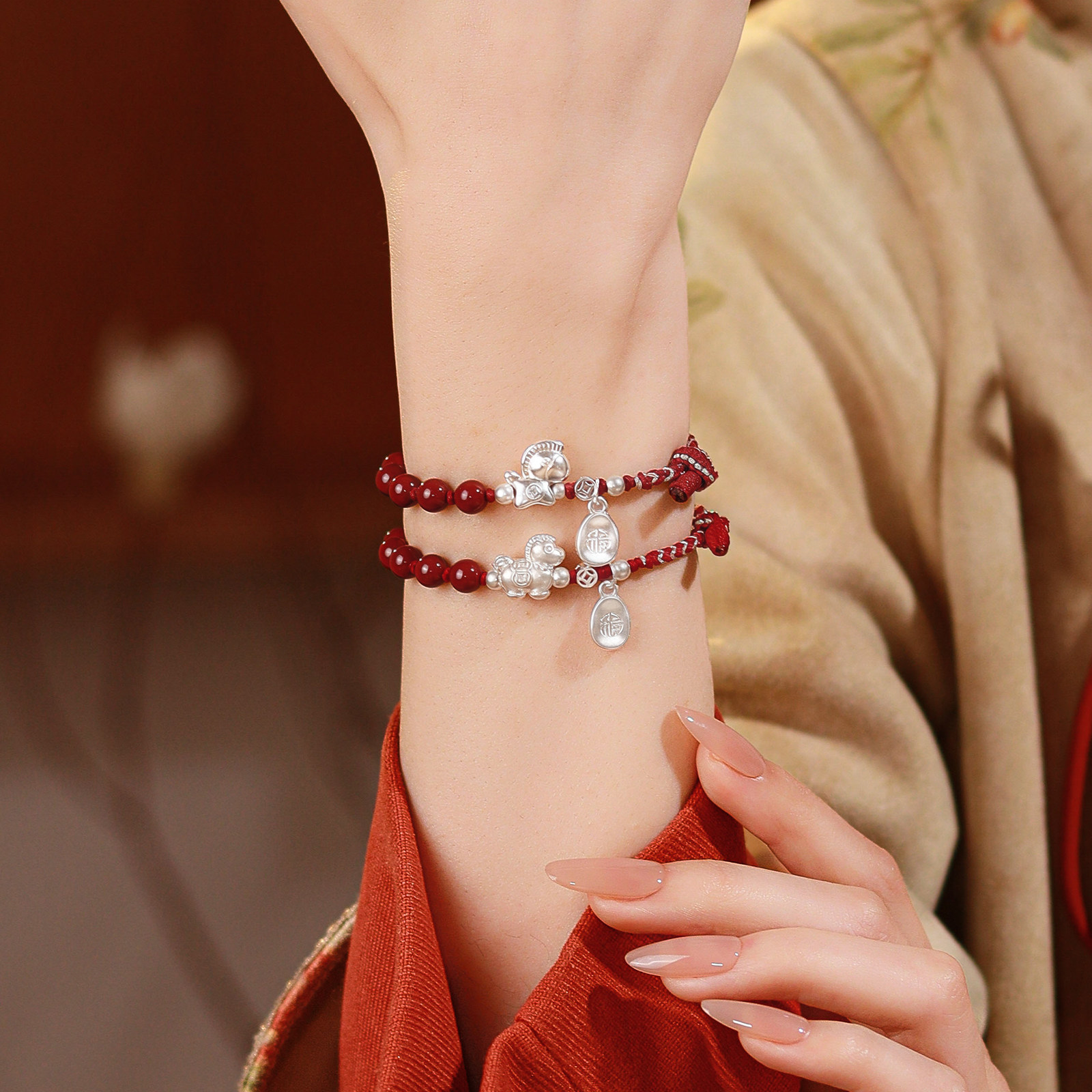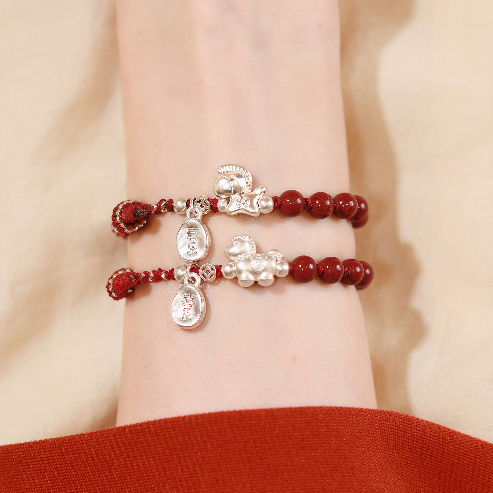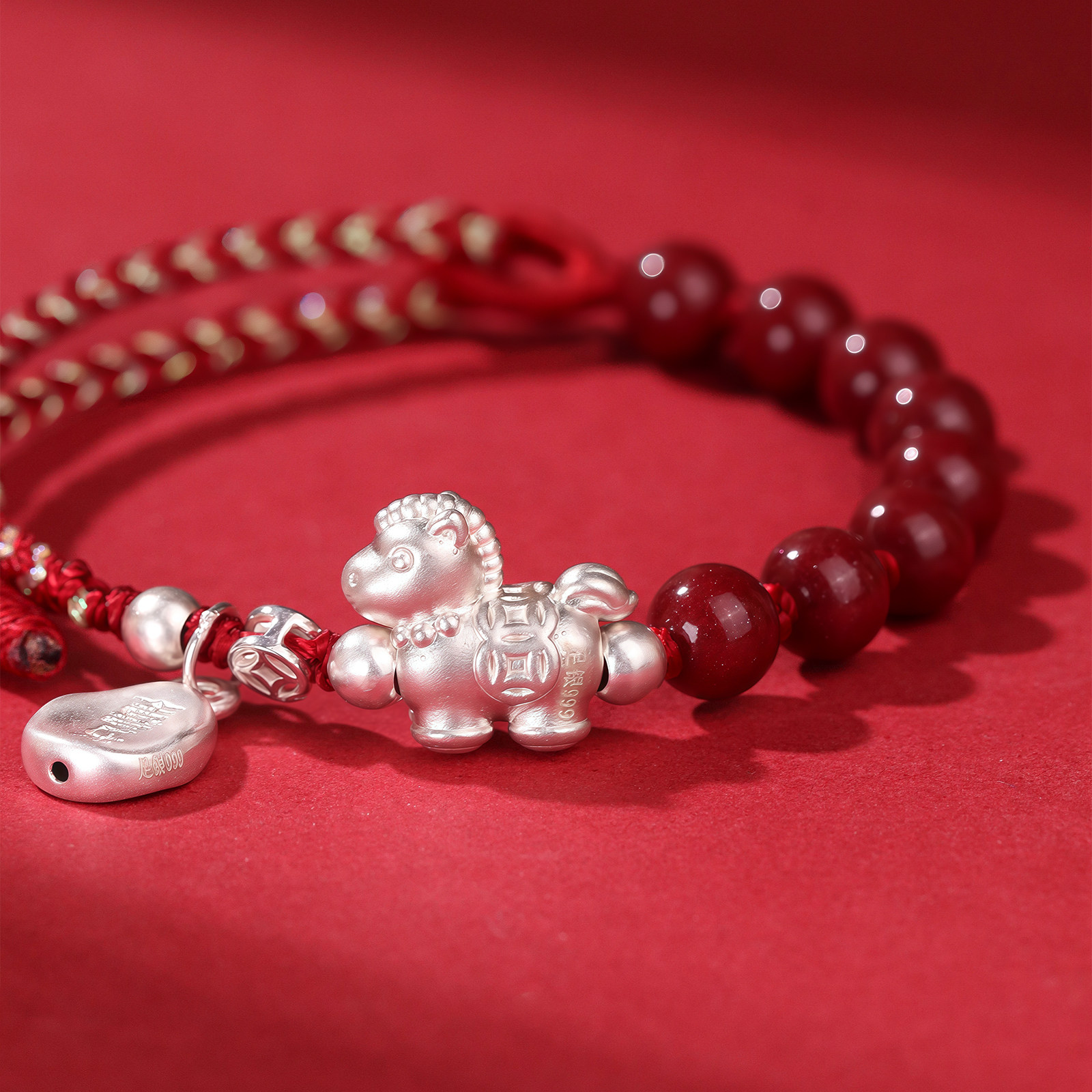 财马迎祥朱砂手串正品女款2026马年本命年红绳手链红手绳生肖足银