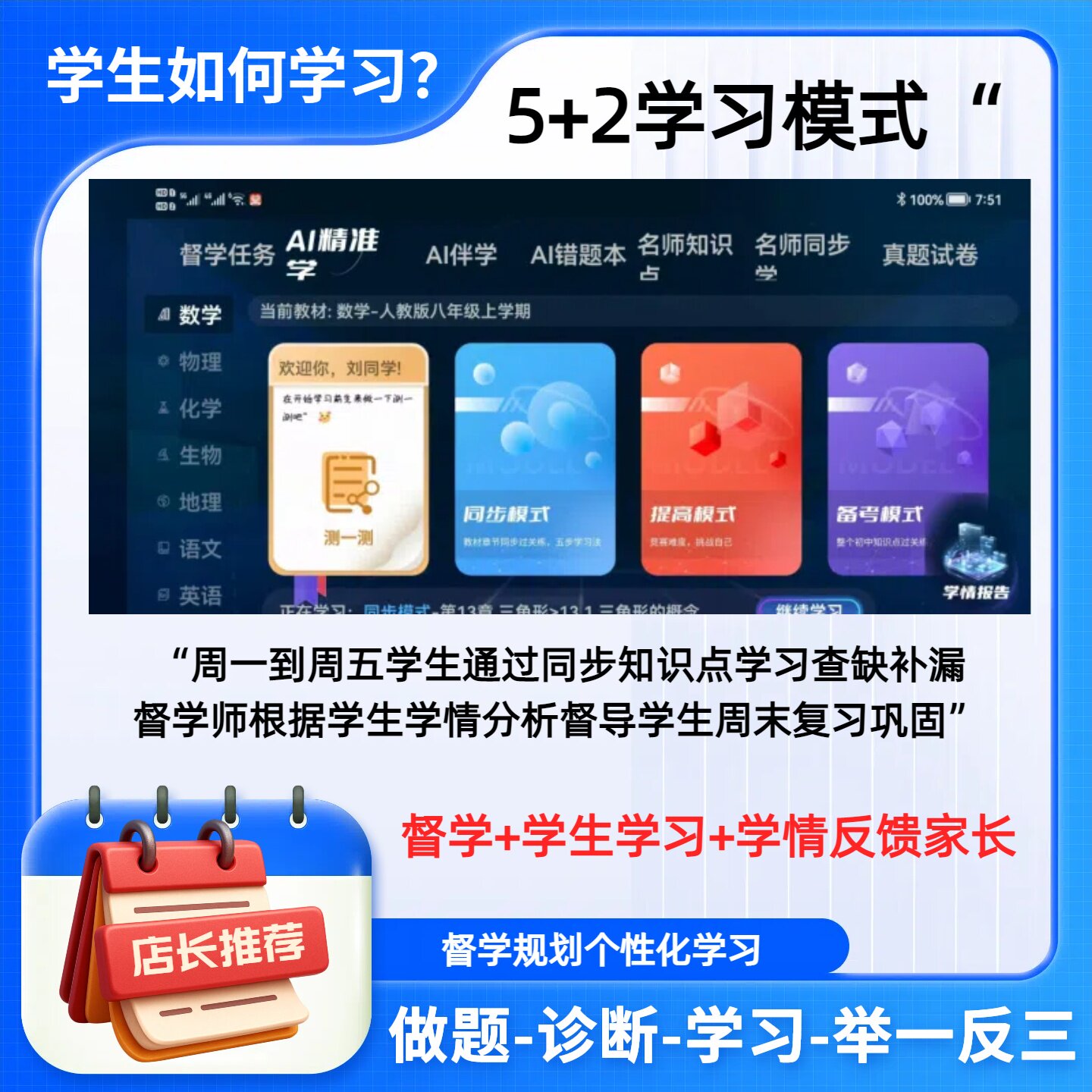 AI智能自习室督学系统精准学学习机小初高全科同步教材测学练备考