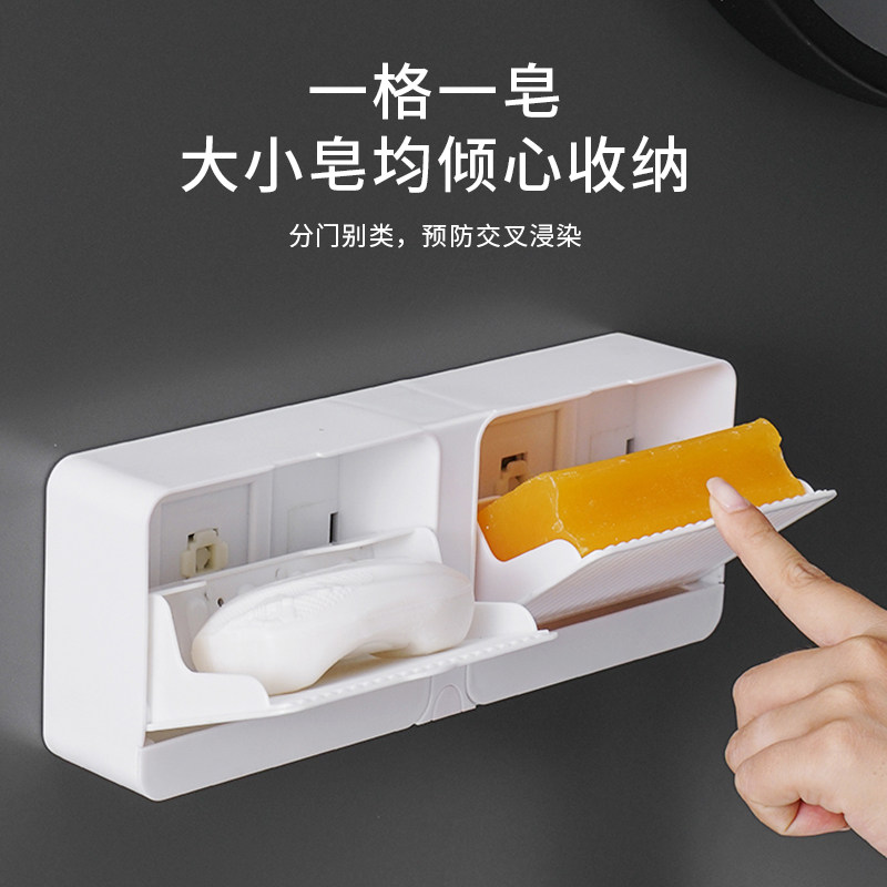 肥皂盒香皂盒壁挂免打孔带盖双格沥水卫生间翻盖学生洗衣皂盒双层