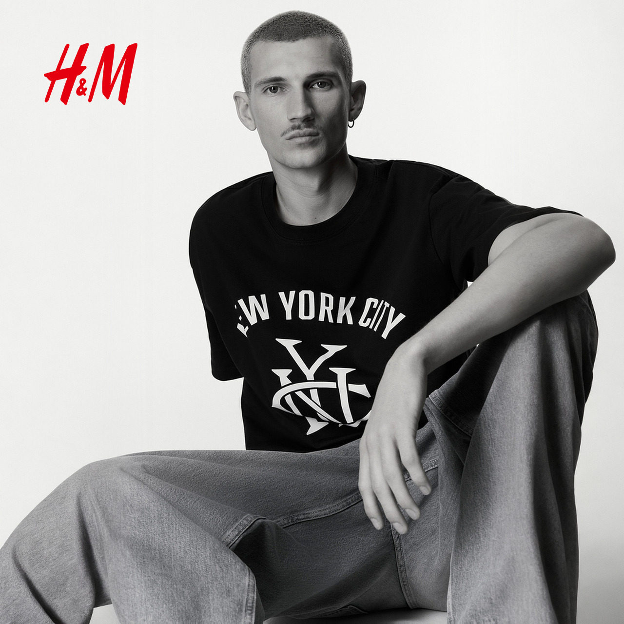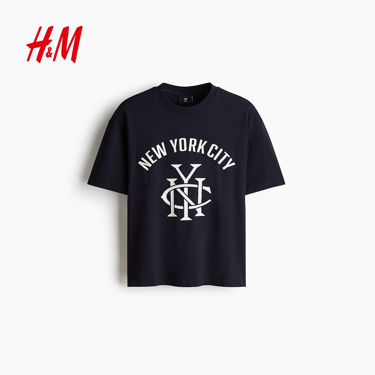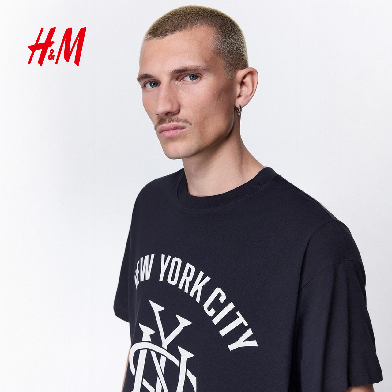 HM男装女装T恤春季情侣装内搭美式圆领宽松版印花短袖T恤1313924