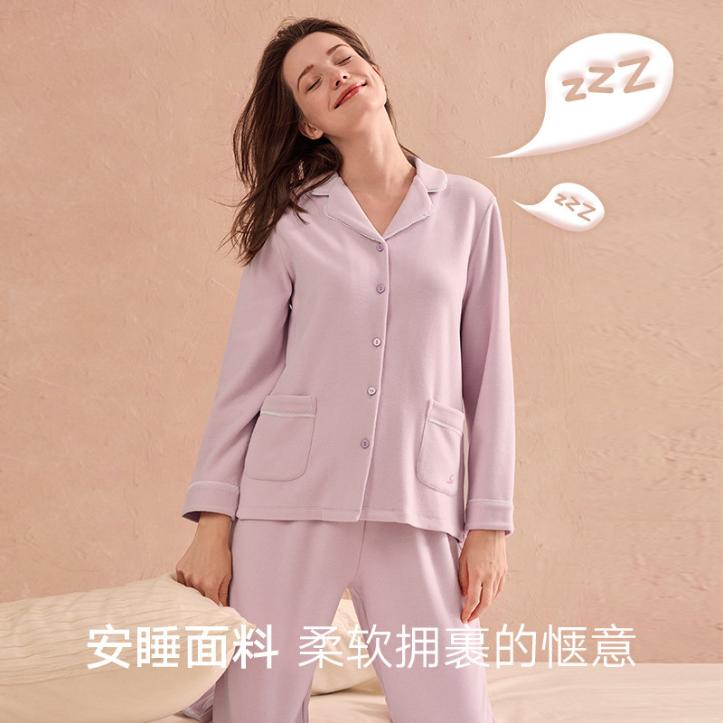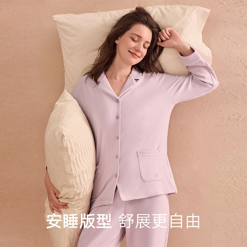 浪莎2025年新款睡衣女款春秋季纯棉长袖家居服秋冬薄款高级感套装