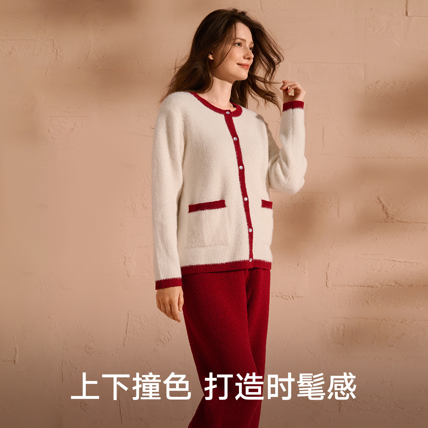 曼妮芬25年新款秋冬女士红色睡衣本命年长袖长裤套装雪尼尔家居服
