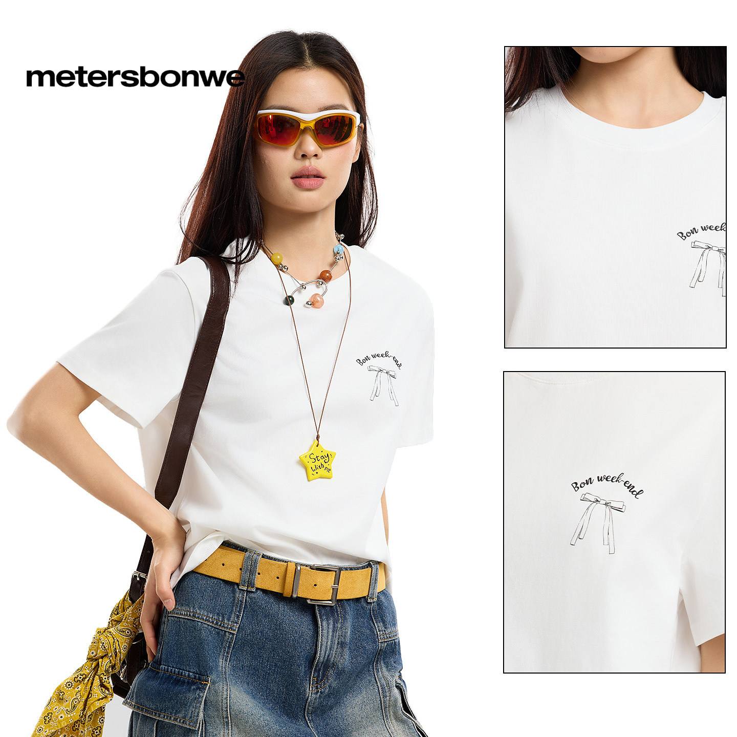 美特斯邦威t恤女装26新品新款潮流撞色水果印花宽松短袖上
