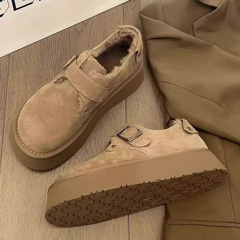 低帮厚底雪地靴女2025新款冬季懒人一脚蹬毛毛棉鞋加绒加厚女鞋子