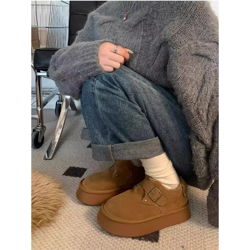 勃肯棉鞋女冬季加绒外穿2025新款一脚蹬厚底增高大头面包鞋雪地靴