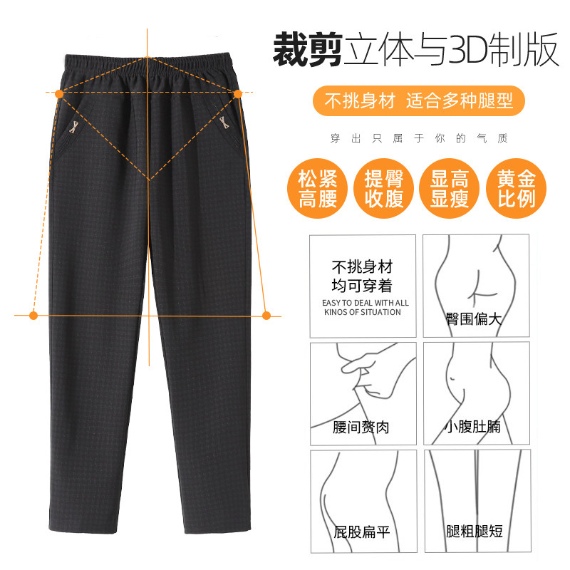 妈妈裤子春秋款松紧高腰弹力中老年女裤宽松大码直筒奶奶加绒长裤