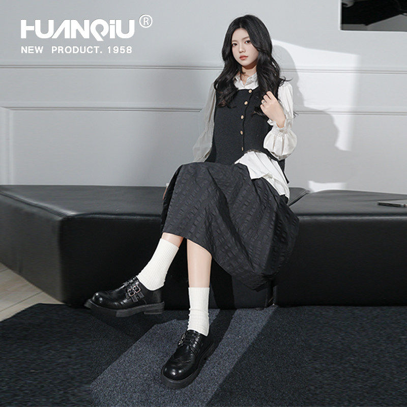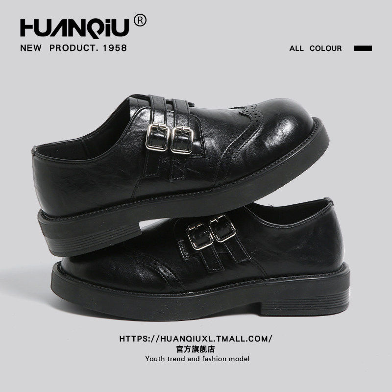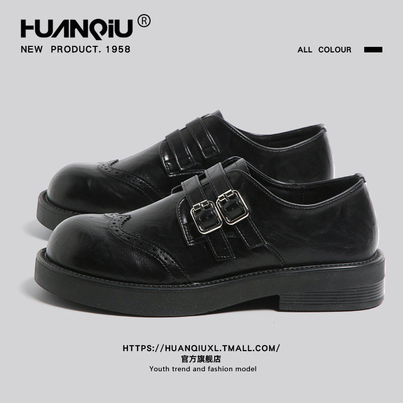 星期六英伦风布洛克小皮鞋女2026年春季新款皮带扣复古粗跟乐福鞋
