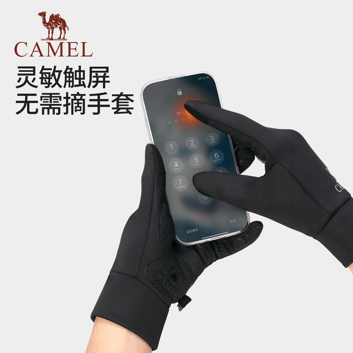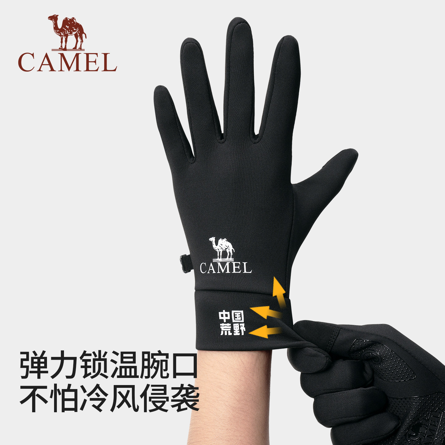 骆驼保暖手套男加绒冬季骑车防风防寒户外运动防滑滑雪可触屏手套