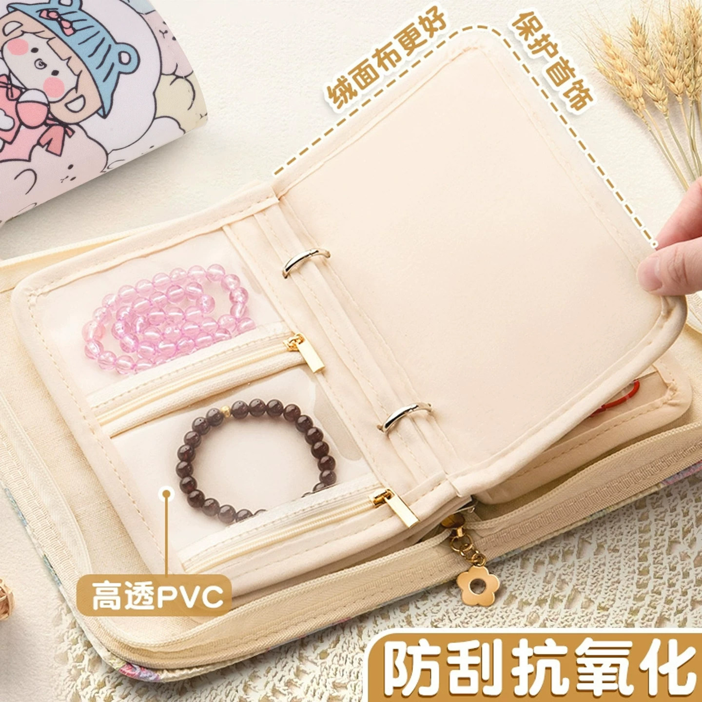 黄金首饰收纳册防氧化高档饰品盒新款珠宝便携旅行绒布收纳包爱笑的女孩戒指项链耳环手链密封袋保存神器拉链