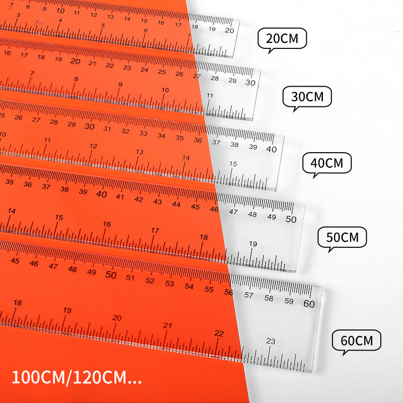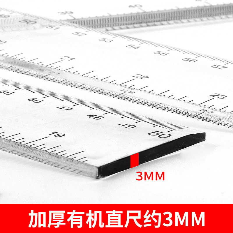 加厚耐磨直尺小学生专用透明尺子有机塑料透明玻璃尺绘图尺子机械工程制图专用丁字尺T型尺绘图测量画图60cm