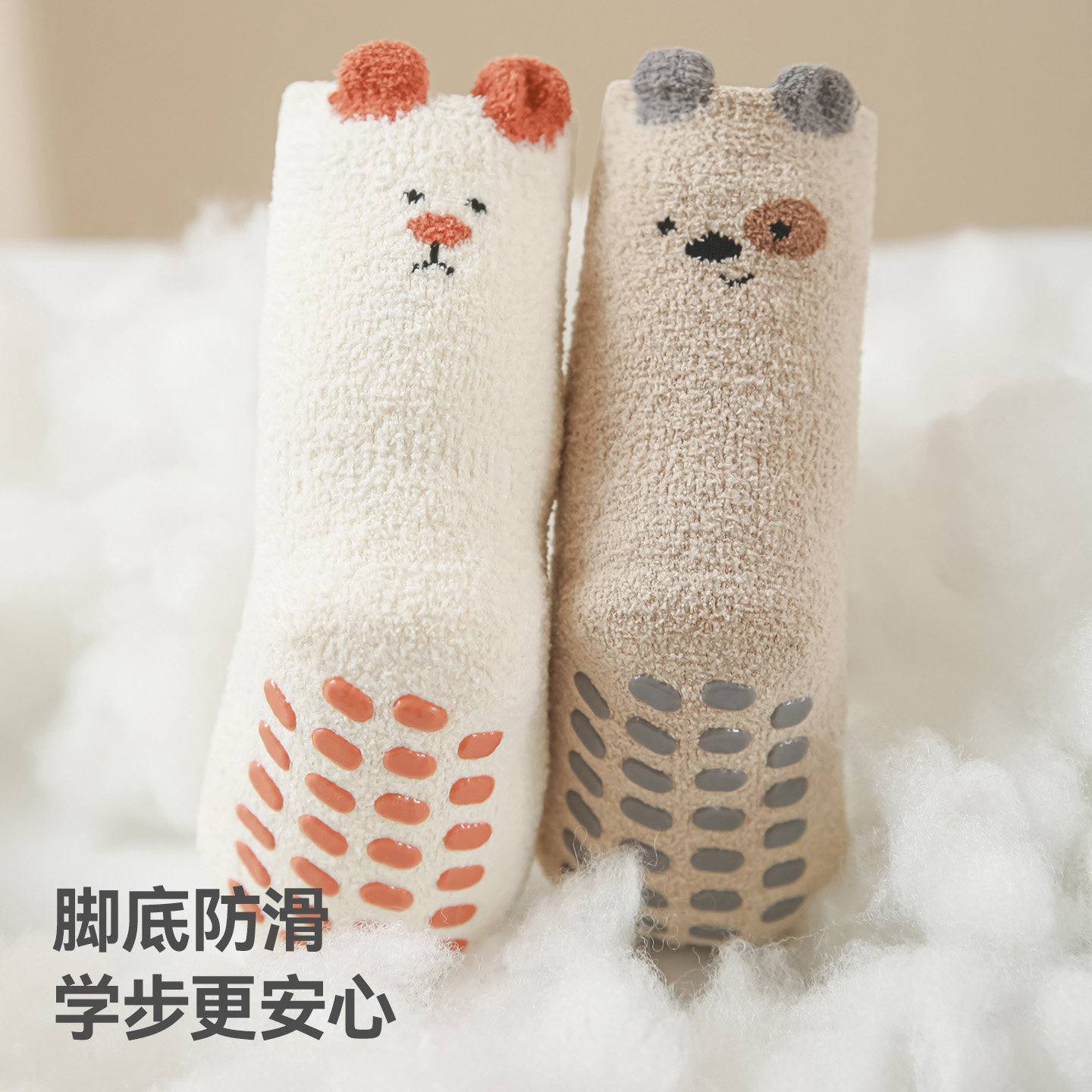 贝肽斯婴儿地板袜冬加厚儿童防滑隔凉室内学步防滑袜宝宝袜子S