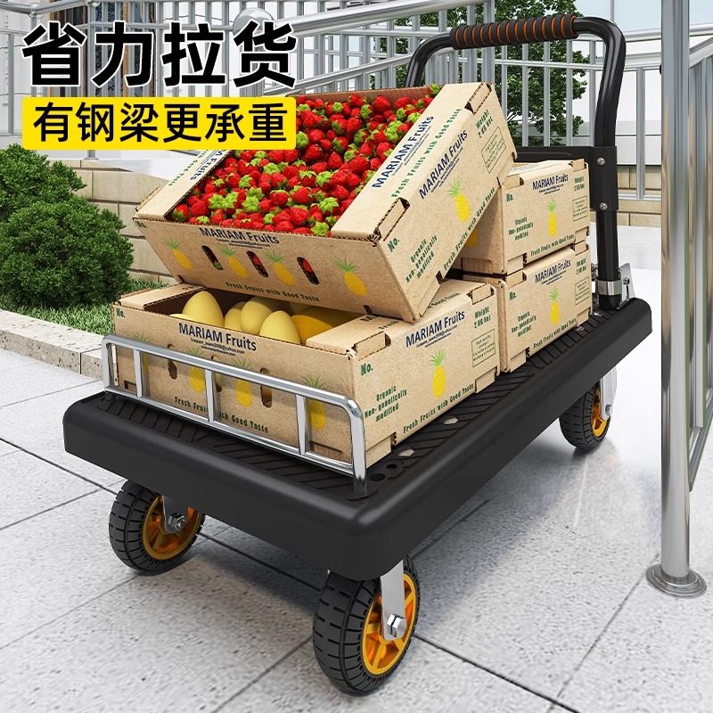 钢板小推车可折叠轻便搬运拉货平板手推车家用取快递便携手拉拖车