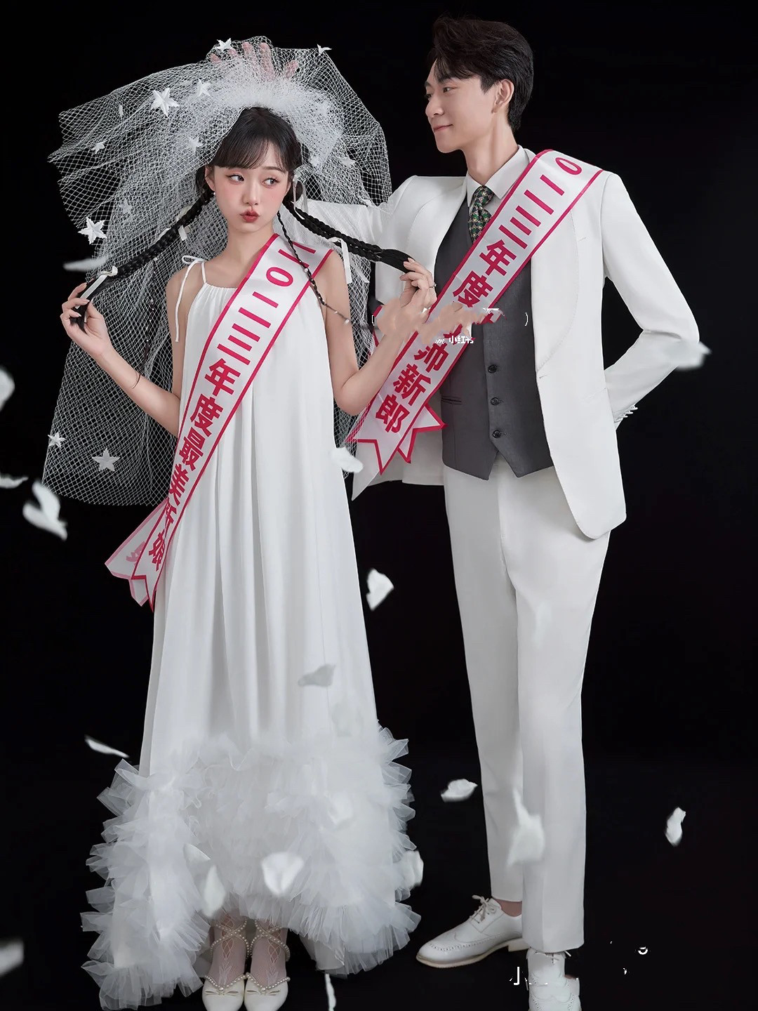 新中式婚纱摄影道具喜嫁拍照秀禾结婚布置婚房长条喜字领证肩带