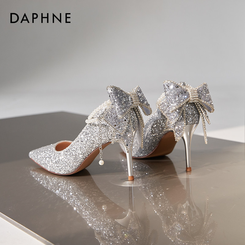 达芙妮水晶高跟鞋婚鞋女2026新款绝美尖头细跟秀禾婚纱两穿新娘鞋