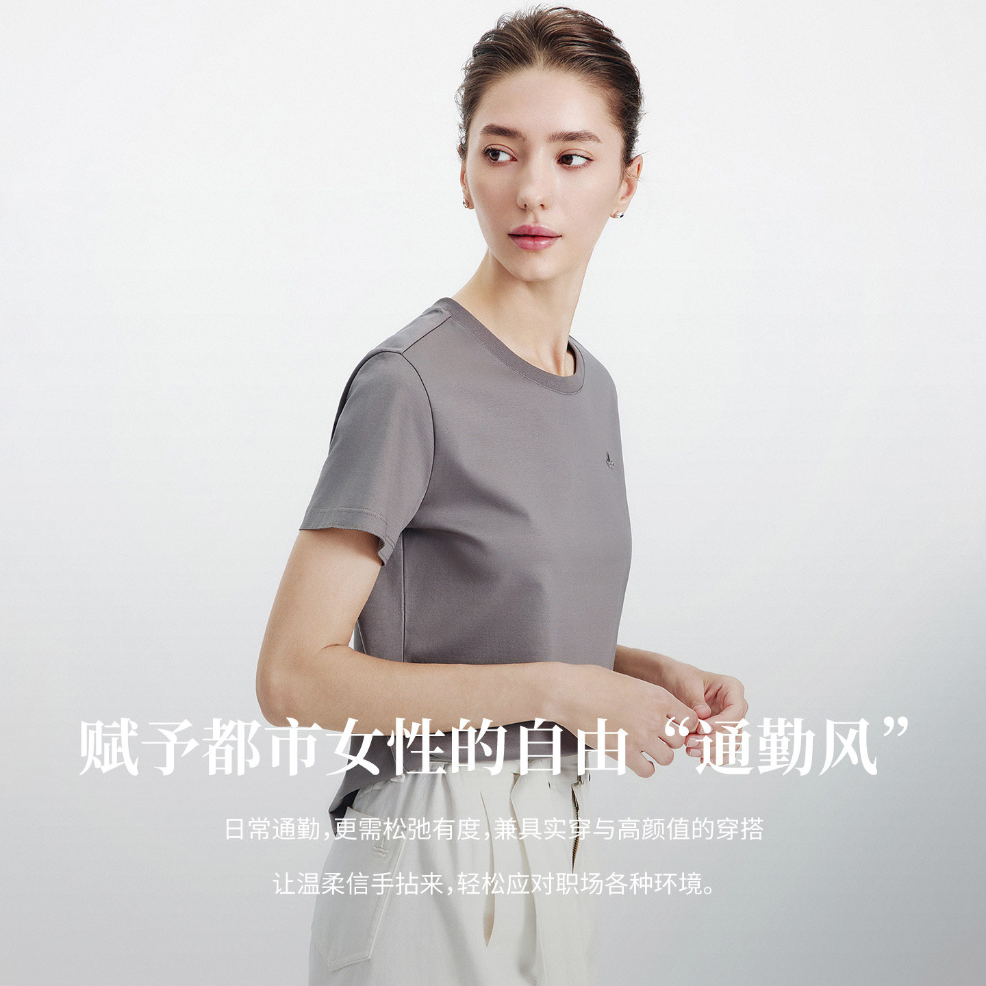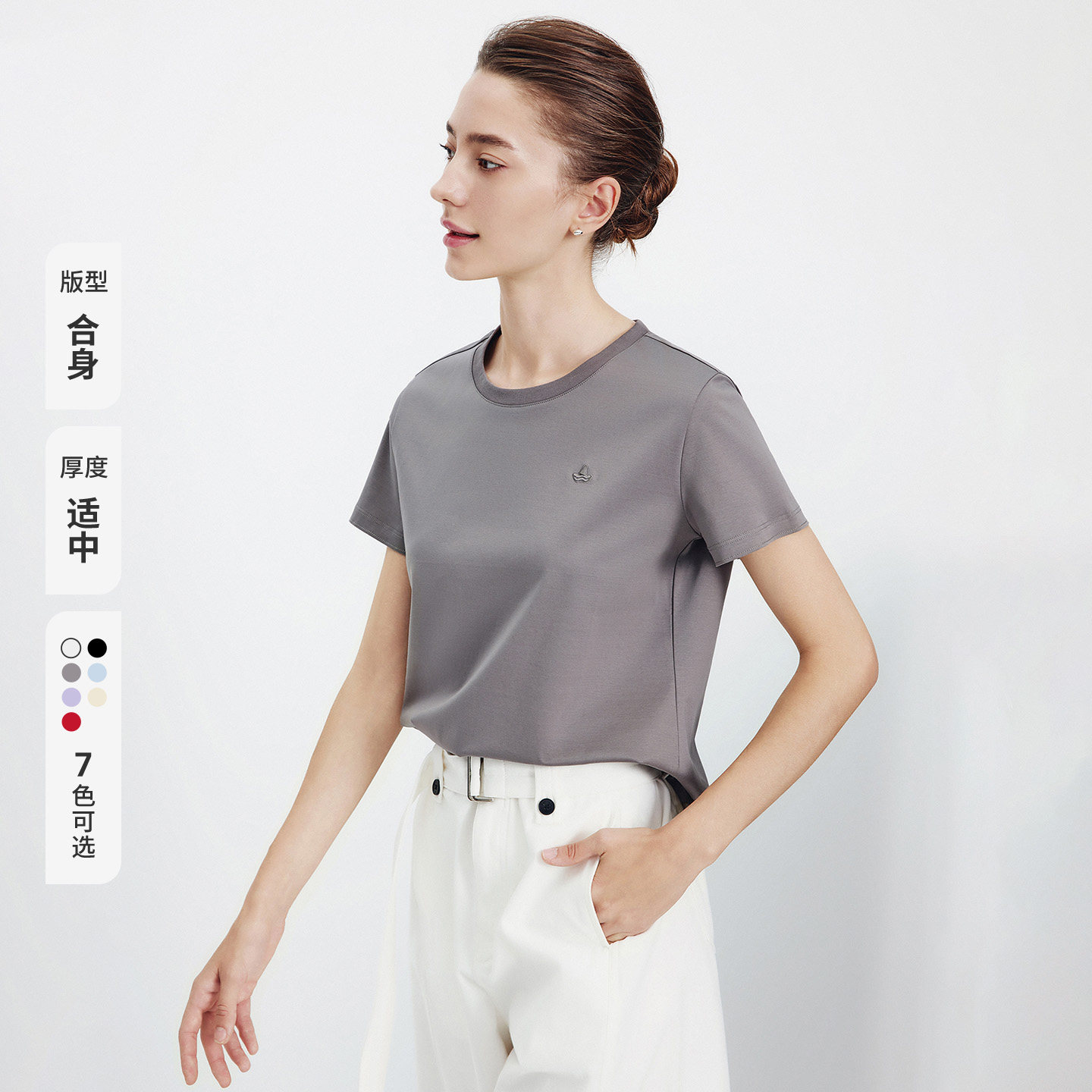 陈都灵丨凉感T森马短袖T恤女修身纯色基础夏季新款圆领白色女装