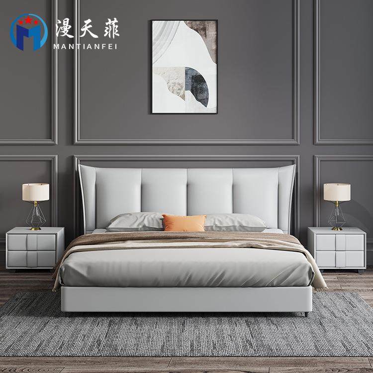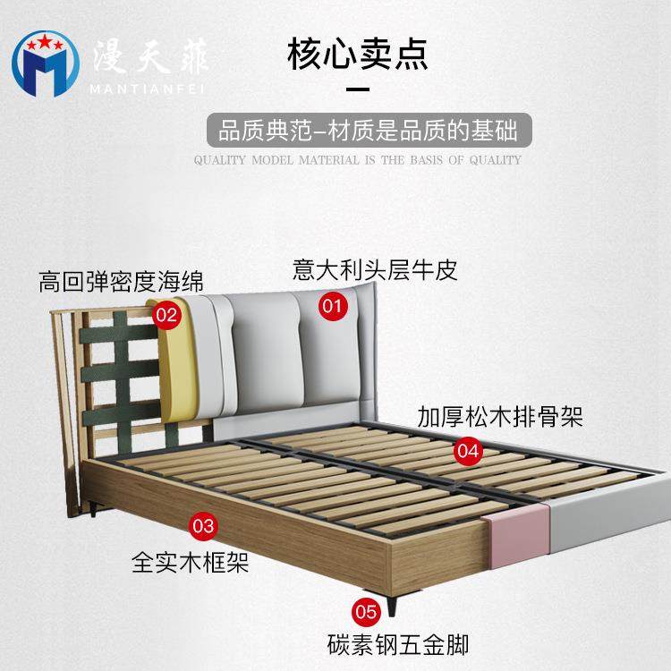 意式极简真皮床双人主卧简约现代软包婚床高箱储物意式轻奢皮艺床