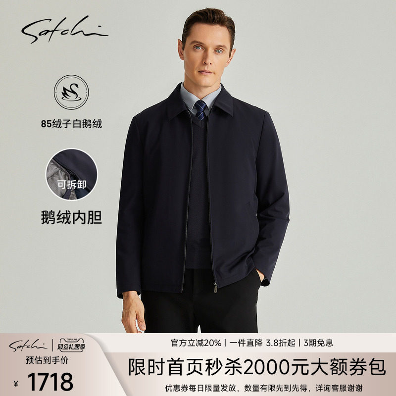 [可拆卸鹅绒内胆]SATCHI沙驰男装男士羽绒服冬季商务行政夹克外套