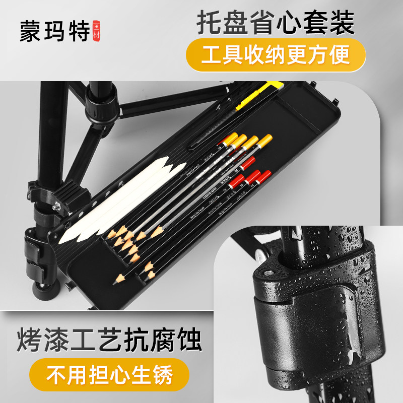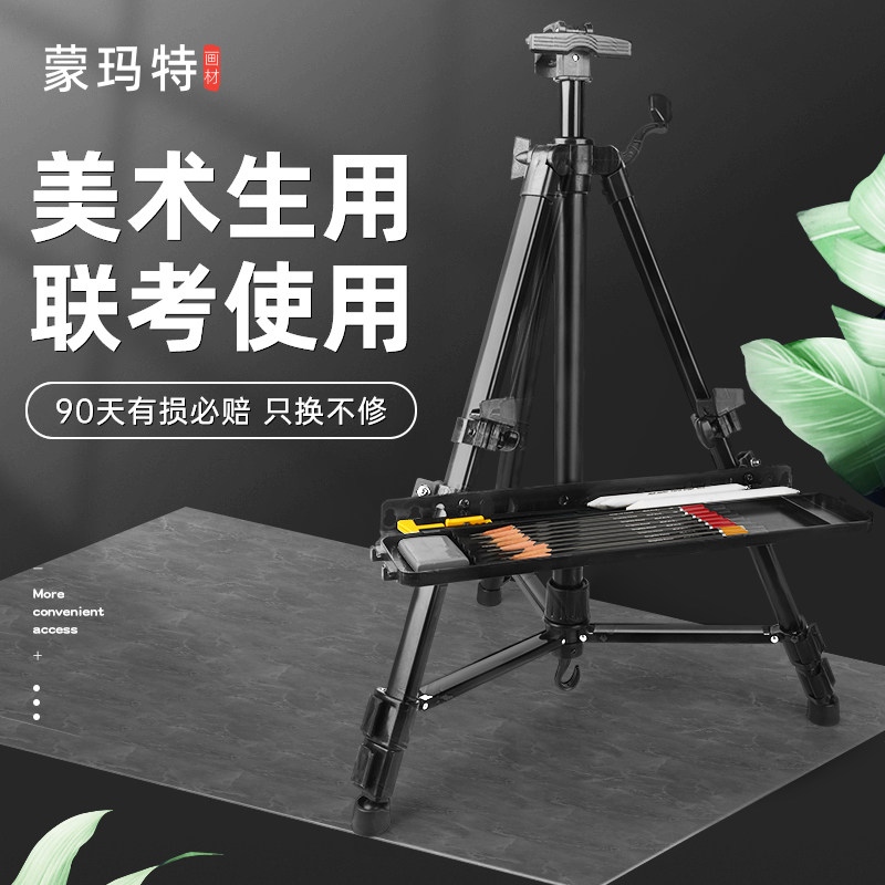 蒙玛特铝合金画架美术生专用画板支架式可折叠便携式金属三角架三脚伸缩儿童画画铁油画架子素描套装户外写生
