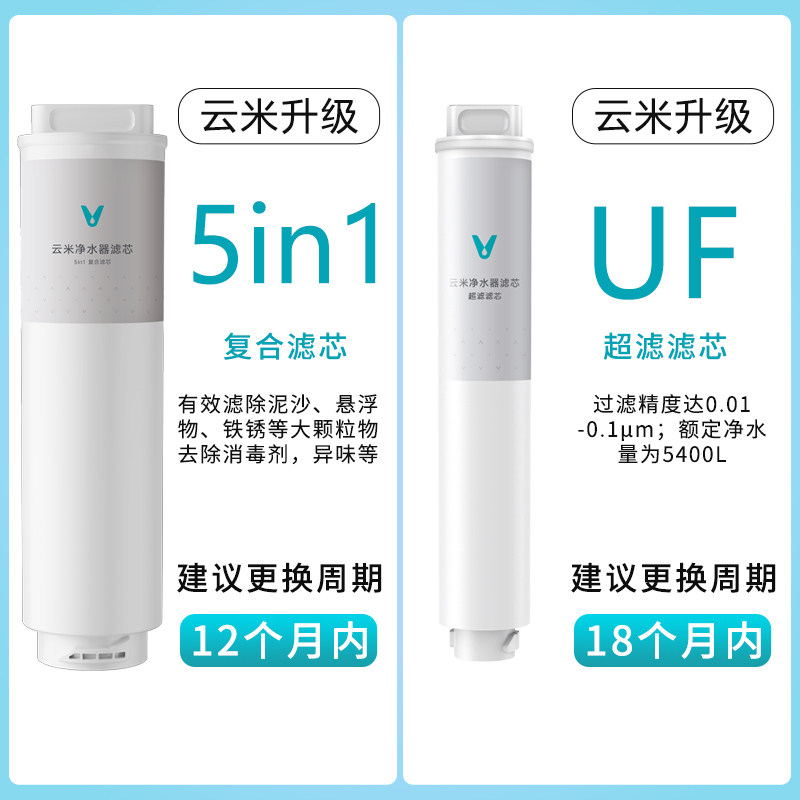 云米净水器Quick5 600G/800G/1000G滤芯RO反渗透5in1复合UF超滤芯