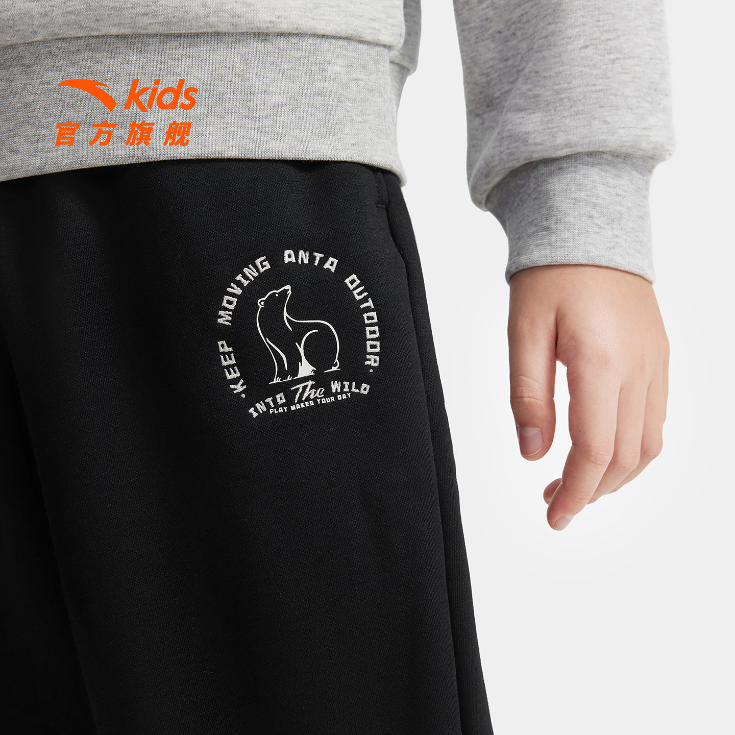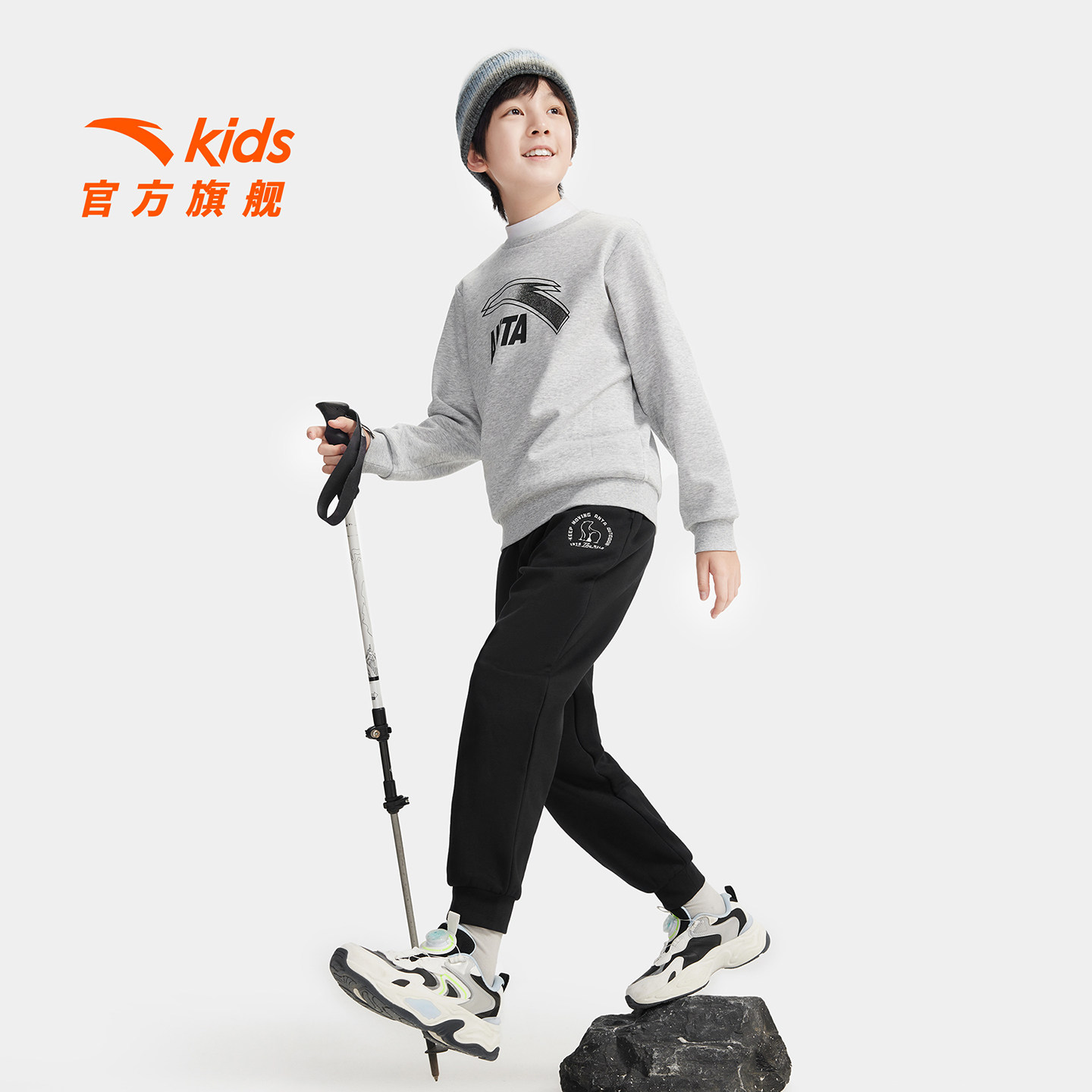 安踏儿童男女童针织运动长裤冬季款舒适保暖中大童加绒宽松运动裤