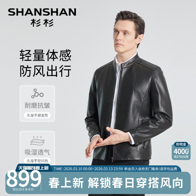 SHANSHAN杉杉官方男士真皮皮衣休闲2025秋季新款立领皮夹克外套男