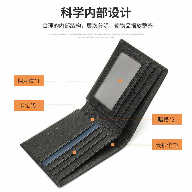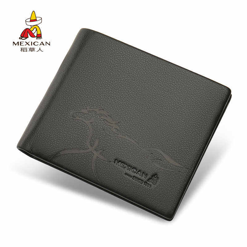 稻草人钱包男士真皮短款卡包一体钱夹休闲简约超薄商务头层牛皮夹