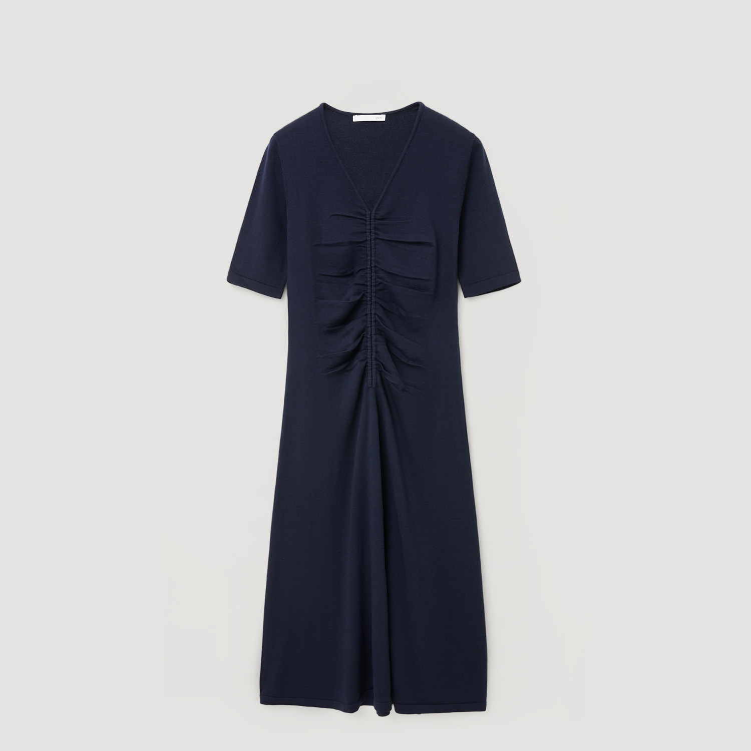 【孙俪同款】OVV秋冬热卖女装丝毛混纺V领短袖连衣裙