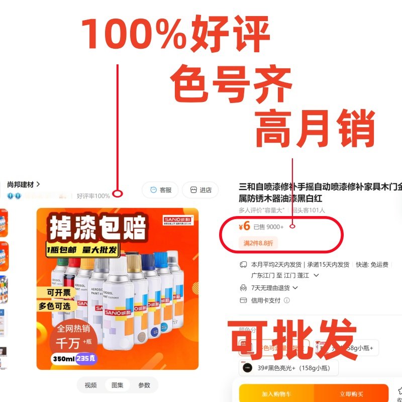 三和自喷漆修补手摇自动喷漆修补家具木门金属防锈木器油漆黑白红