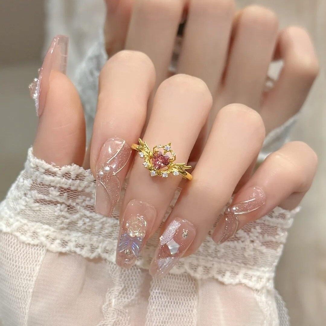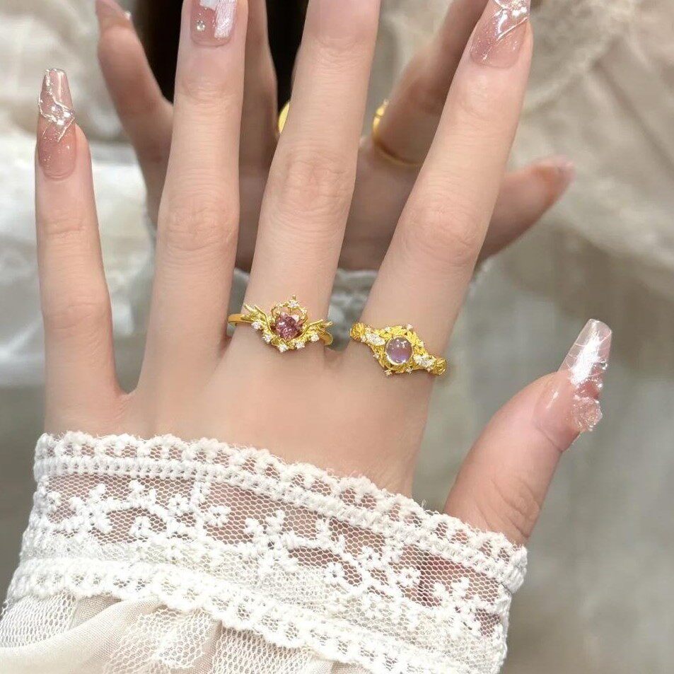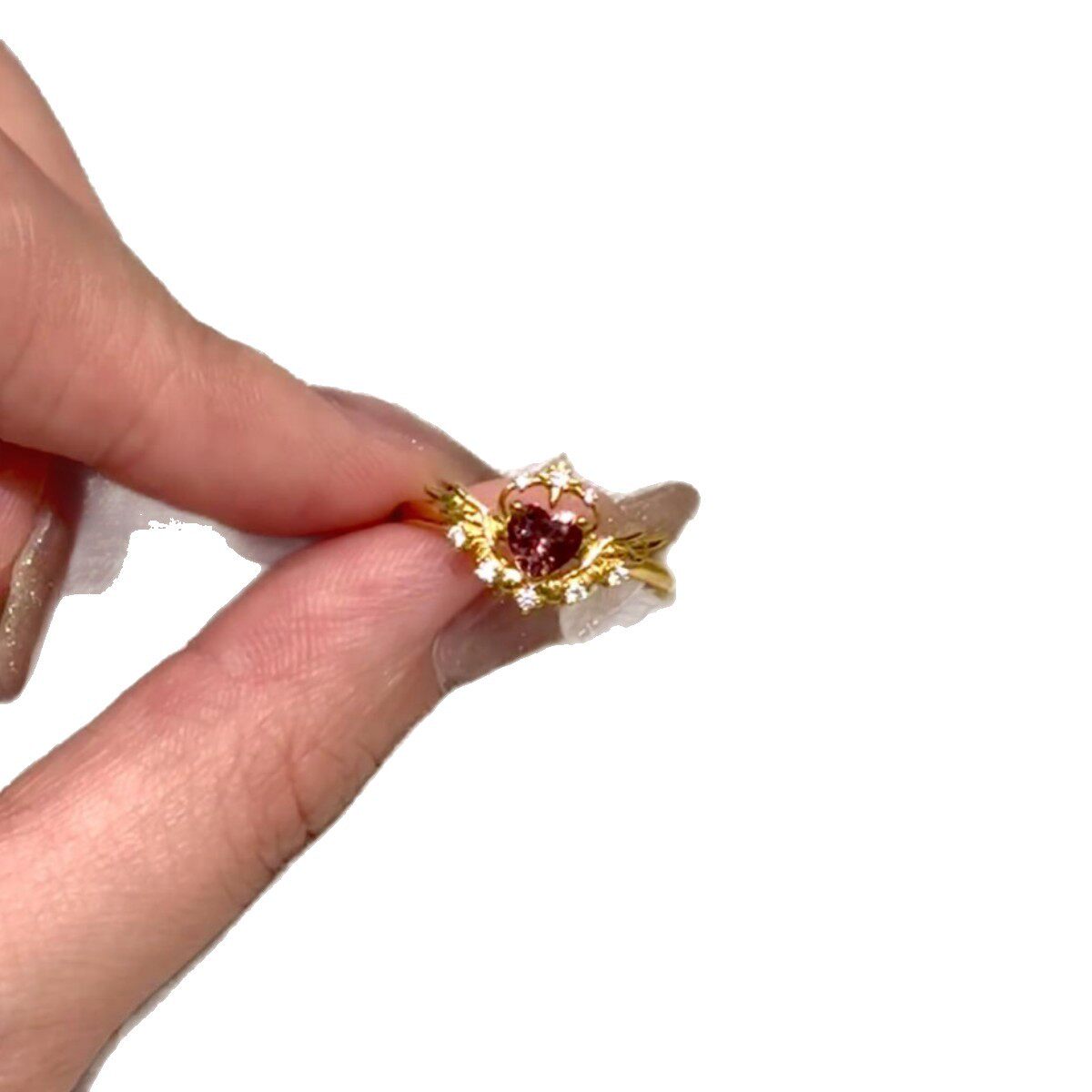 小清新仙女风魔法少女羽翼戒指女开口可调节粉色镶钻爱心指环轻奢