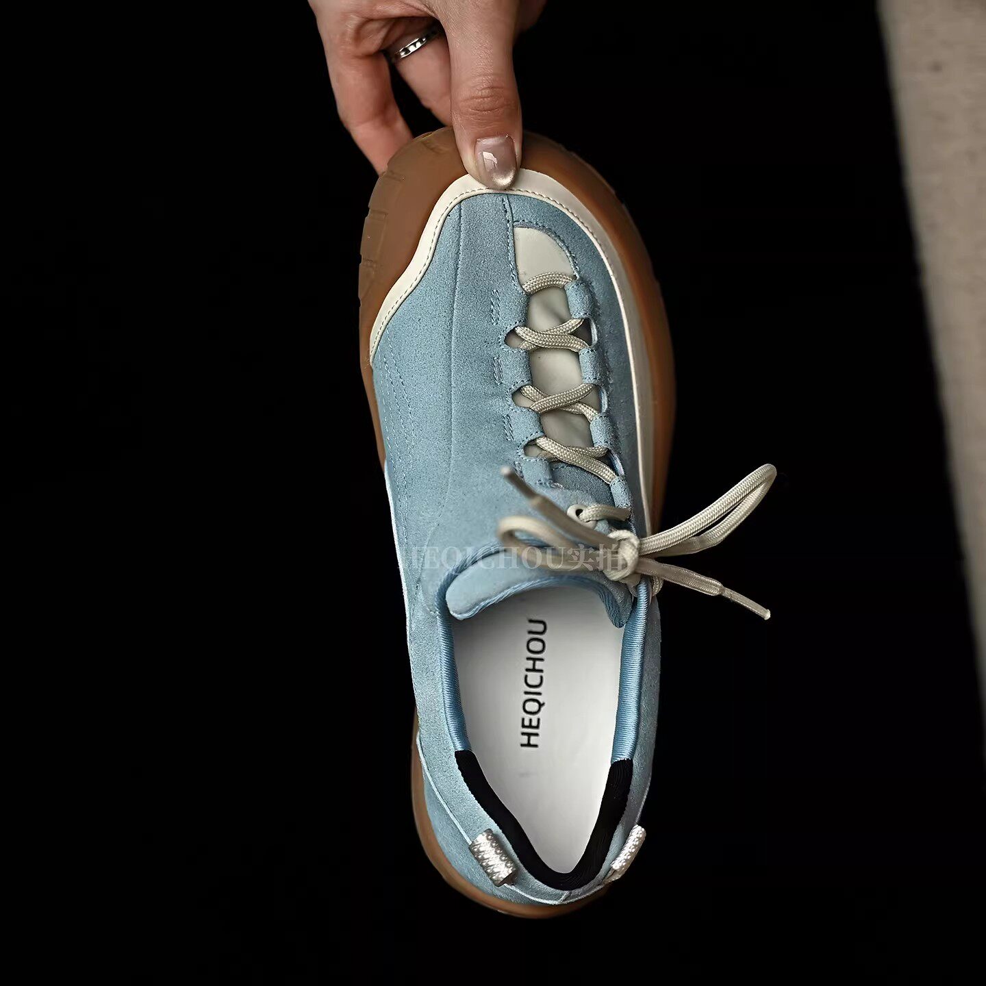 真皮~骄屿内增高芭蕾德训鞋女新款复古百搭休闲阿甘鞋厚底运动鞋