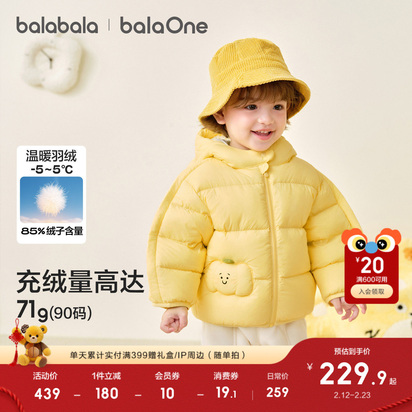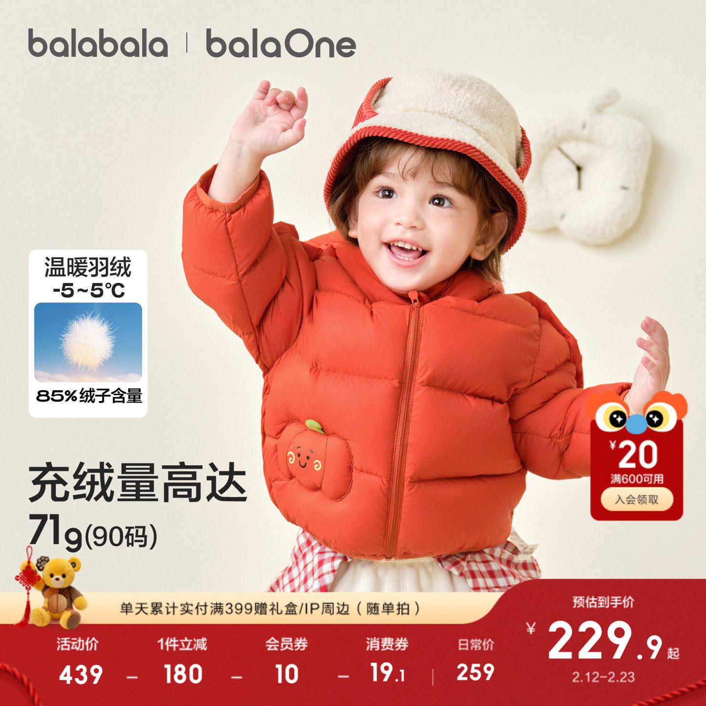 巴拉巴拉宝宝羽绒服冬装男童女童加厚保暖连帽外套萌2025新款上衣
