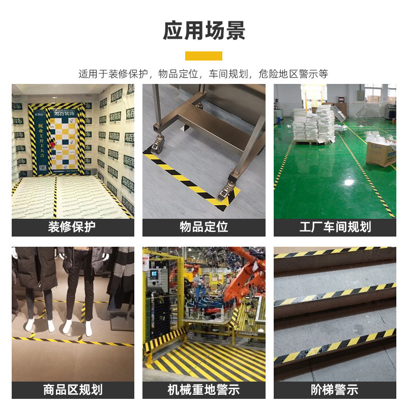 警示胶带PVC黑黄地板胶带仓库车间地面划线分区彩色强力耐磨无痕斑马线无尘车间地板胶带5S定位标识地贴胶带