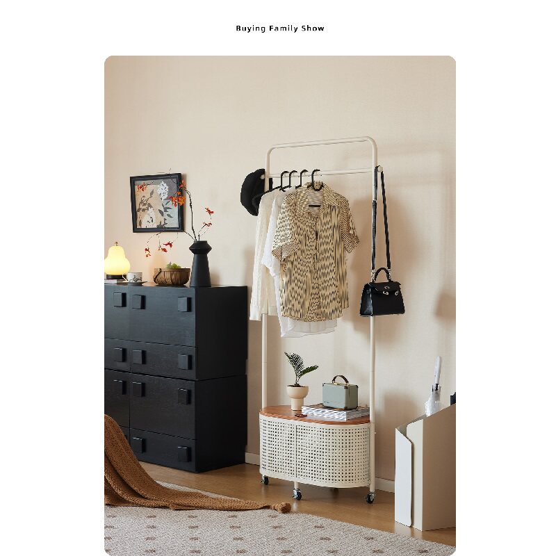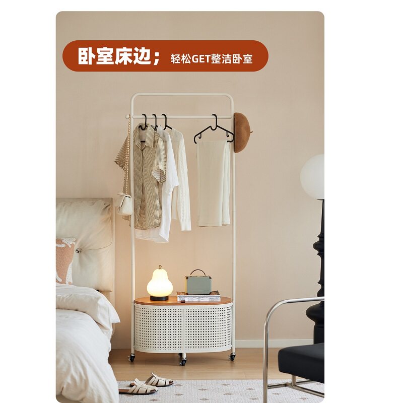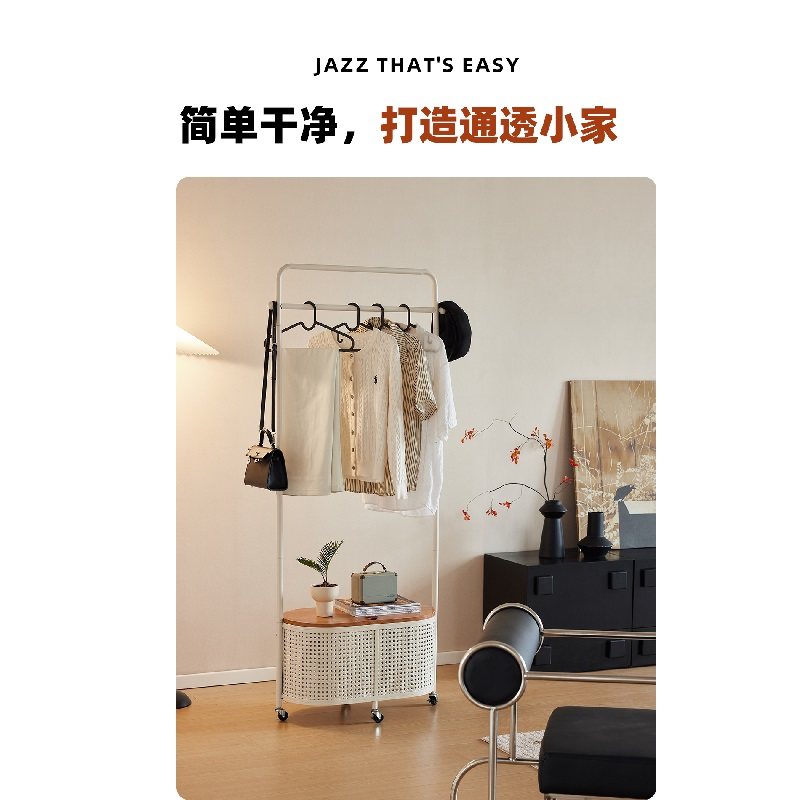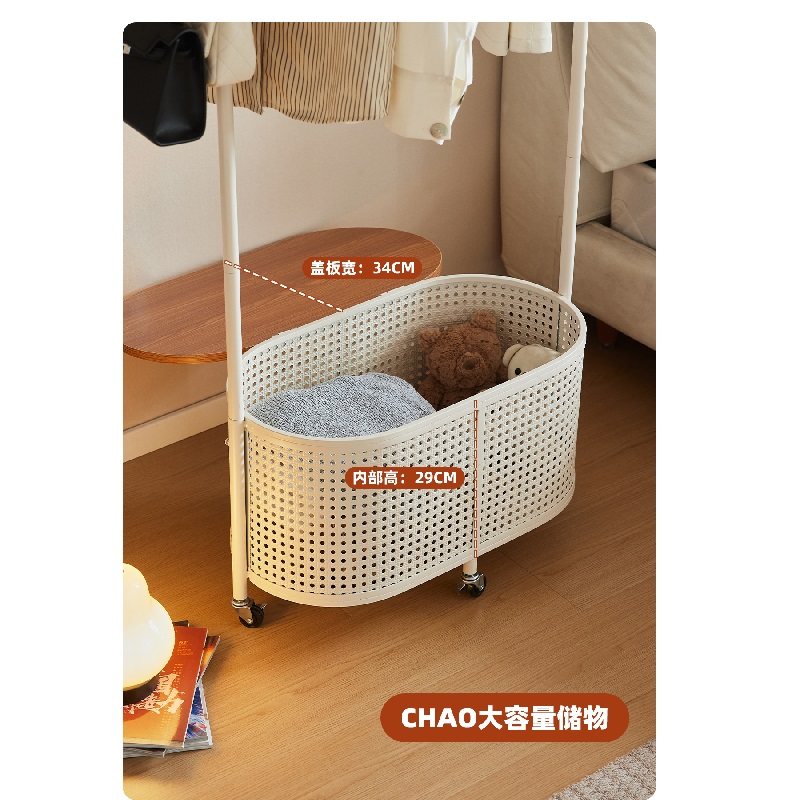 衣帽架落地卧室日式移动仿藤编客厅脏衣篓网红奶油风收纳置物架子