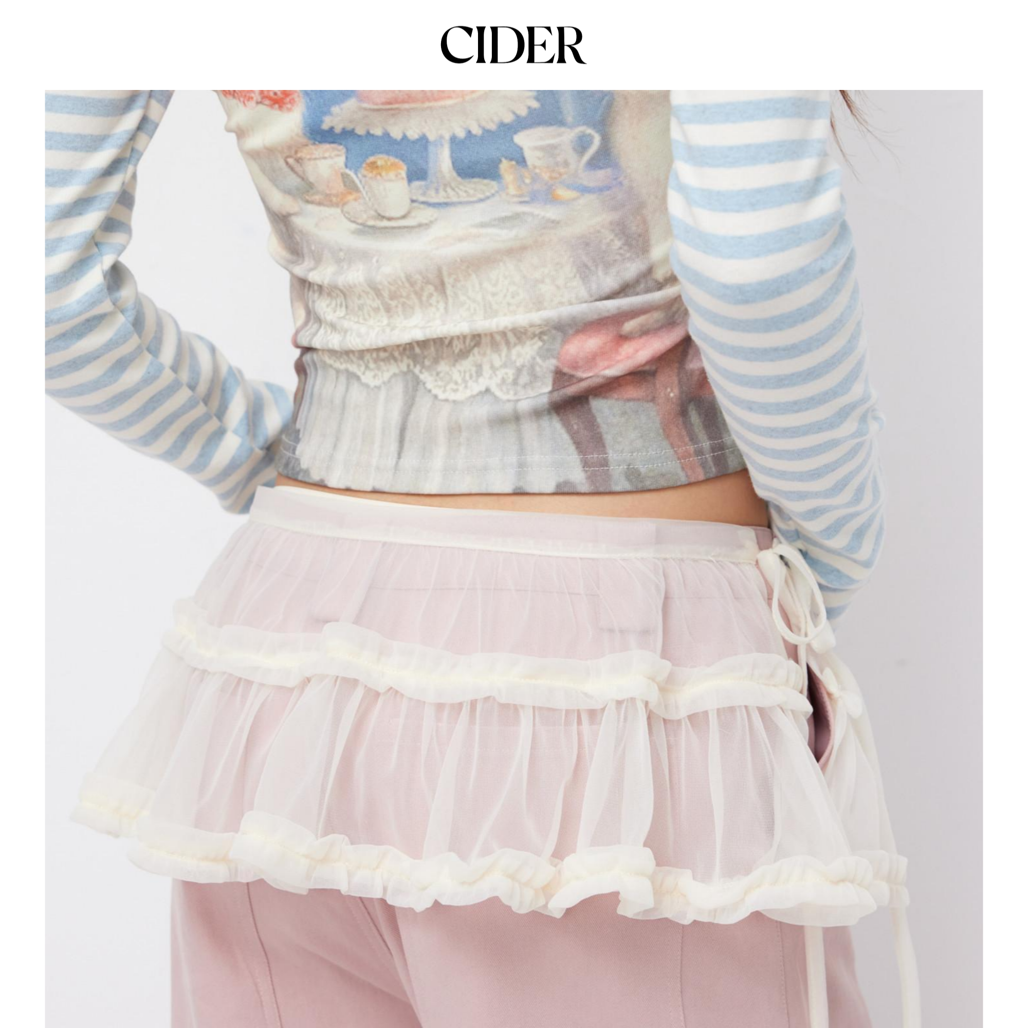 CIDER 网纱低腰荷叶边多层系带超迷你半身裙114841574