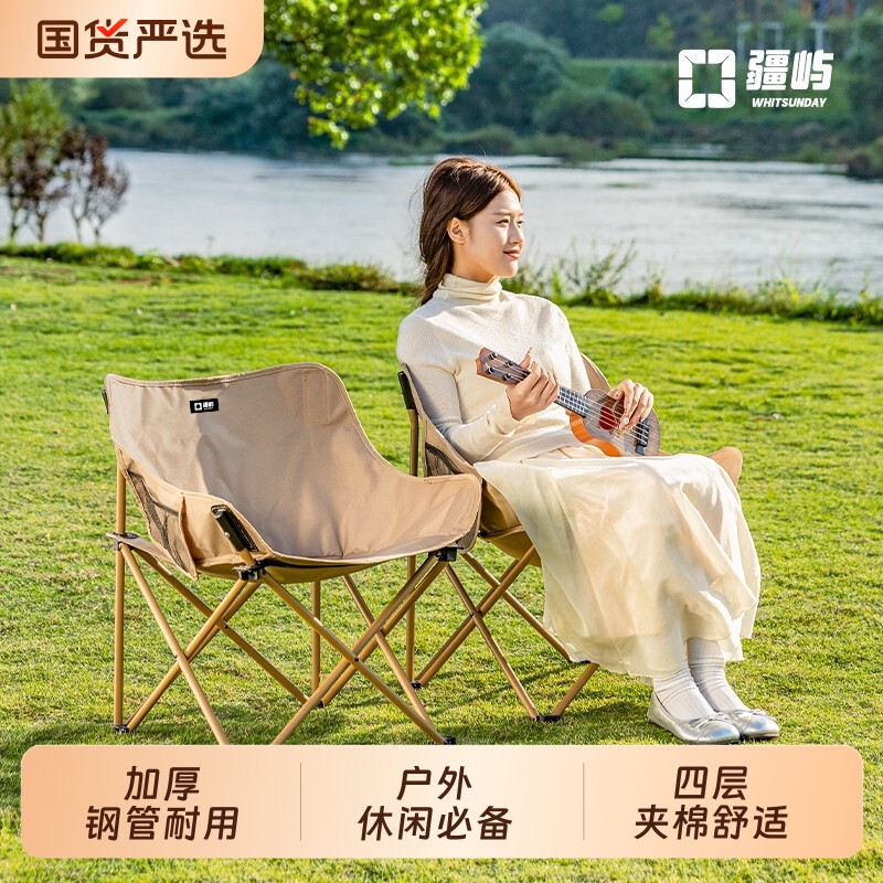 疆屿户外折叠椅露营椅子装备躺椅便携野餐桌椅月亮椅小凳子钓鱼