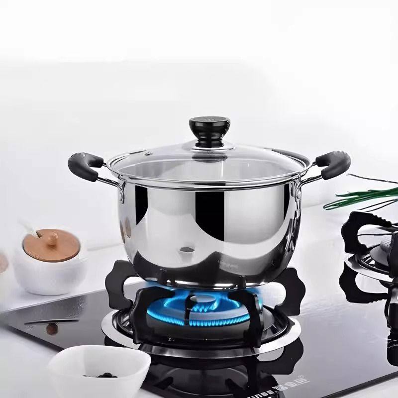 康巴赫款加厚辅食锅汤锅煮粥锅蒸锅家用不锈钢燃气煲汤锅双耳平底