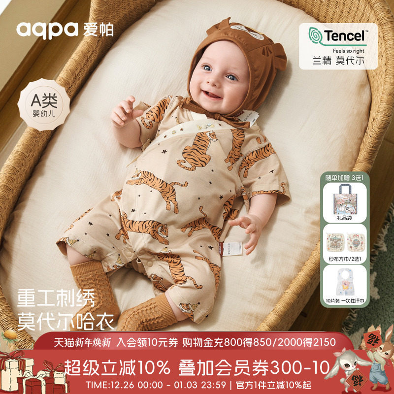 aqpa爱帕新生儿婴儿衣服莫代尔夏季宝宝连体衣哈衣睡衣