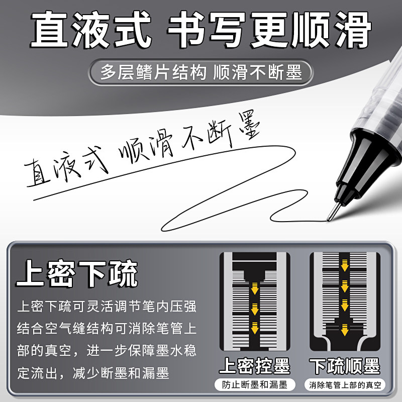 晨光直液式走珠笔作业神器黑笔刷题笔签字笔考试老师学生专用蓝红笔黑色笔圆珠笔水笔直液笔笔速干中性笔