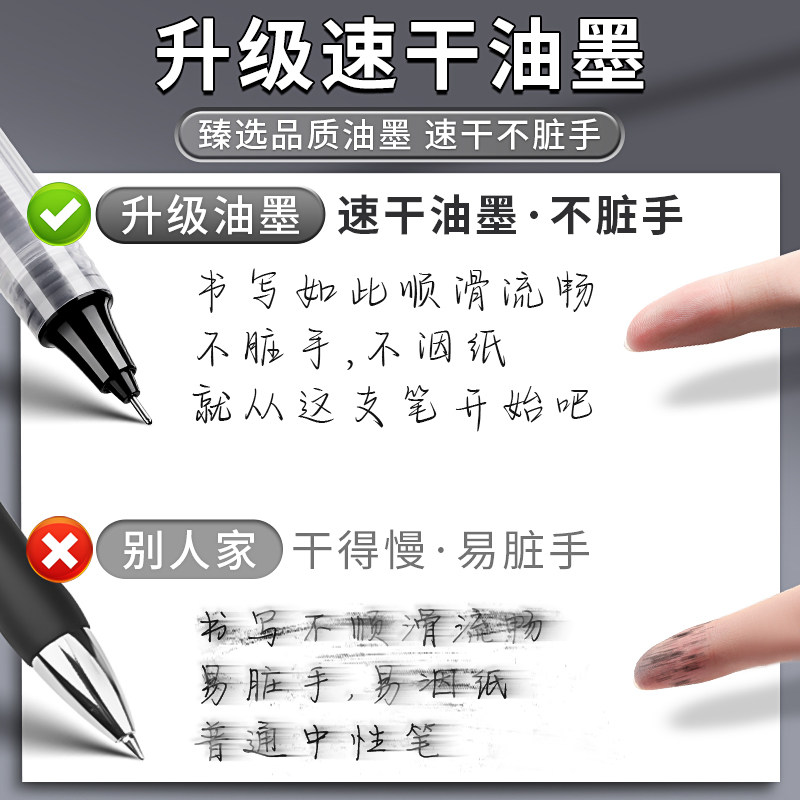 晨光中性笔按动式黑色水笔红色蓝色速干顺滑大容量学生用碳素笔