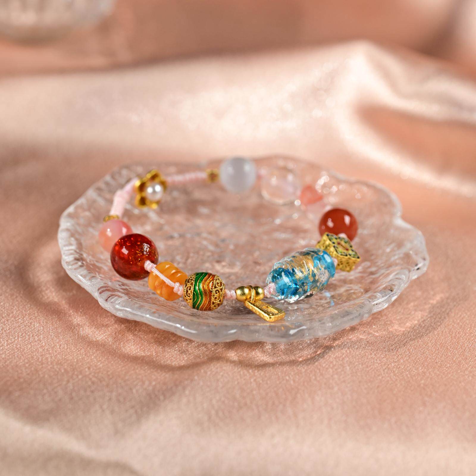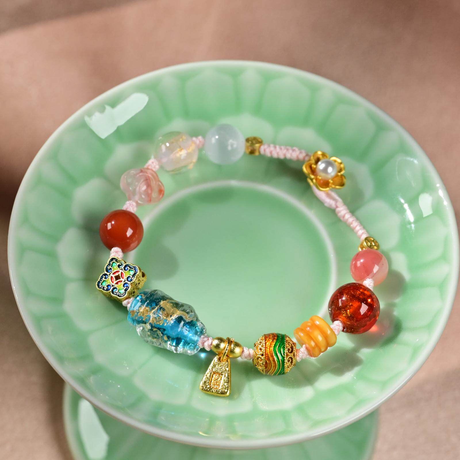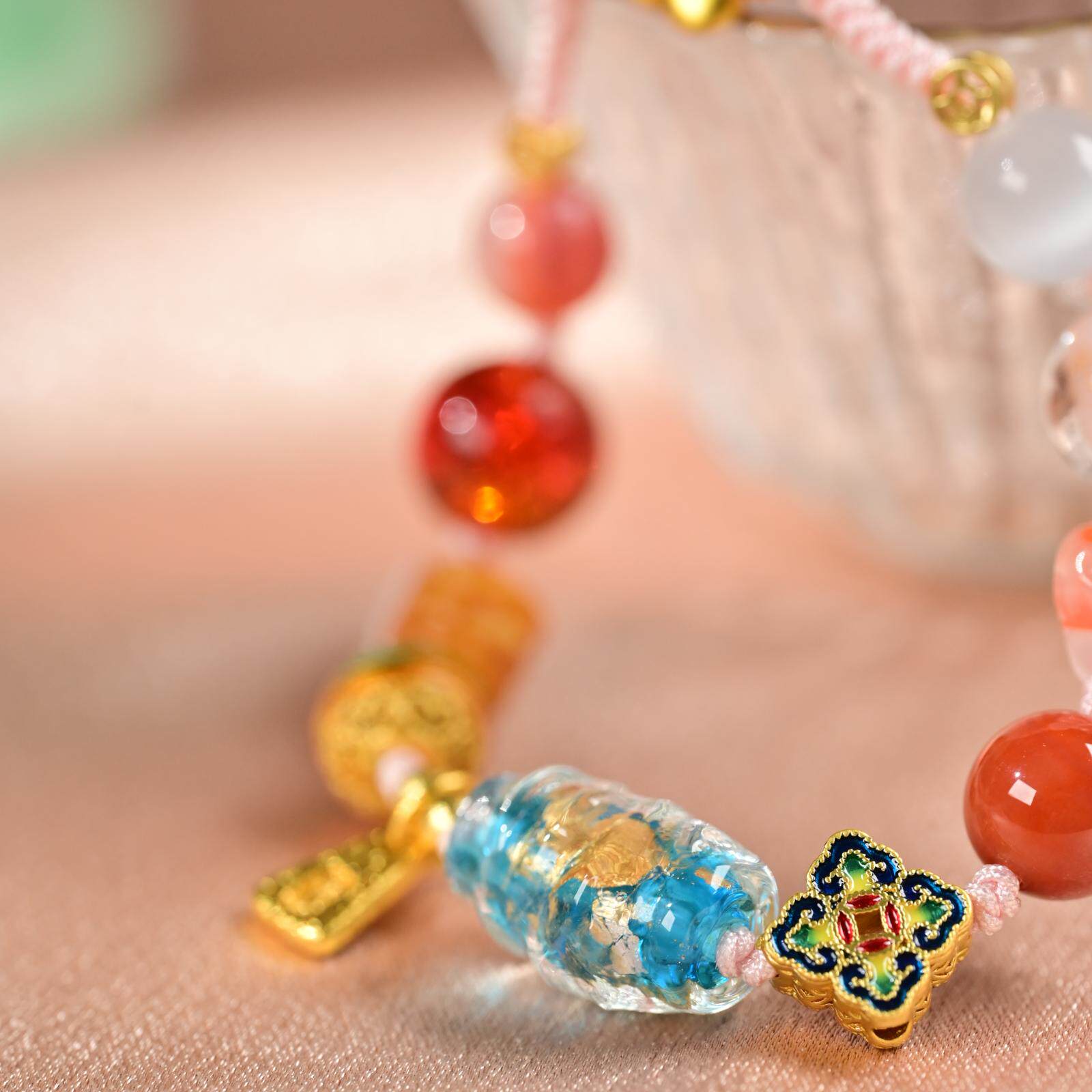 中玉智谷普陀山十二通宝多宝手串琉璃手编绳新中式天然水晶招财