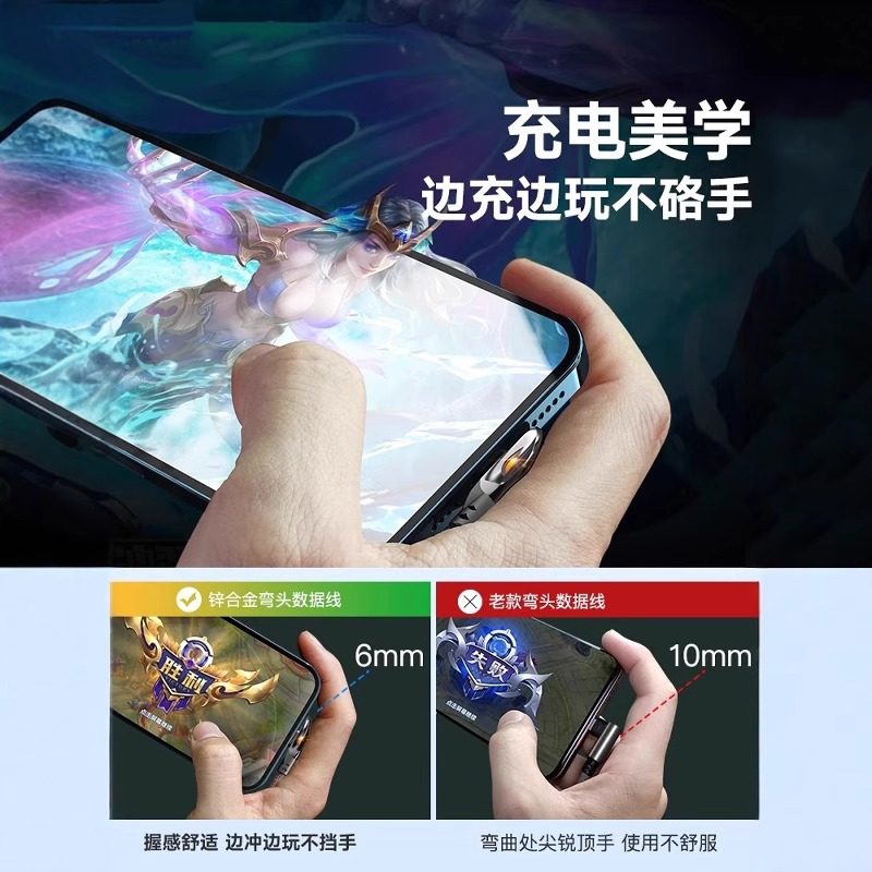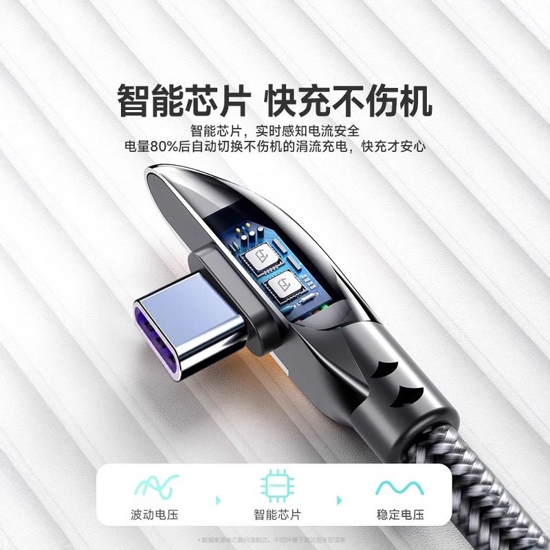 typec充电线弯头超级快充数据线适用华为荣耀vivo小米OPPO安卓手机充电器线iqoo游戏加长双typc线车载usb专用