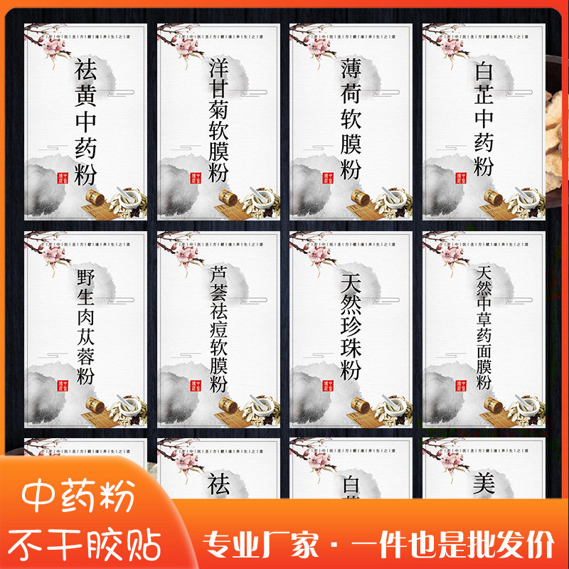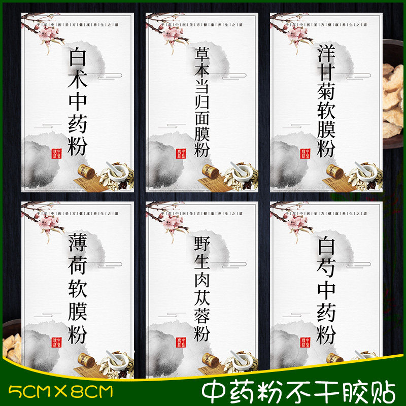 中药面膜海藻面膜贴纸草本当归面膜粉玫瑰花软膜粉灵芝粉标签Y