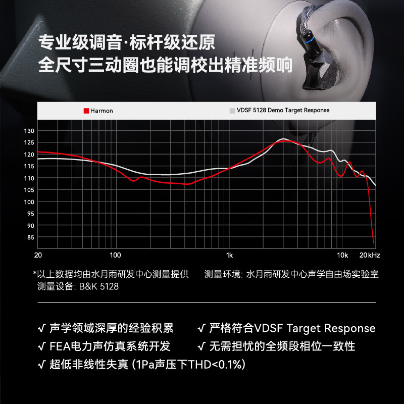 水月雨和鸣Harmon三动圈入耳式耳机有线HIFI可换线耳塞监听耳返