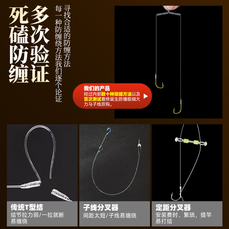 金袖鱼钩鱼线绑好鱼钩套装全套子线双钩成品组合防缠鲫鱼钩钓鱼