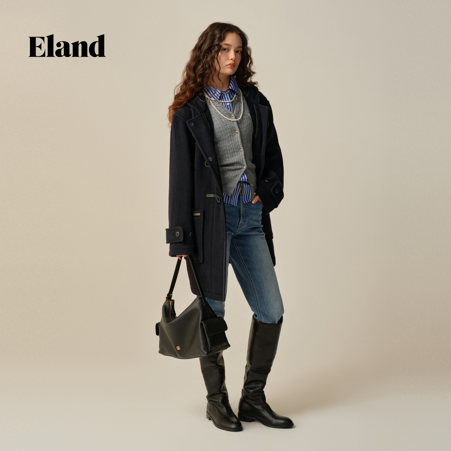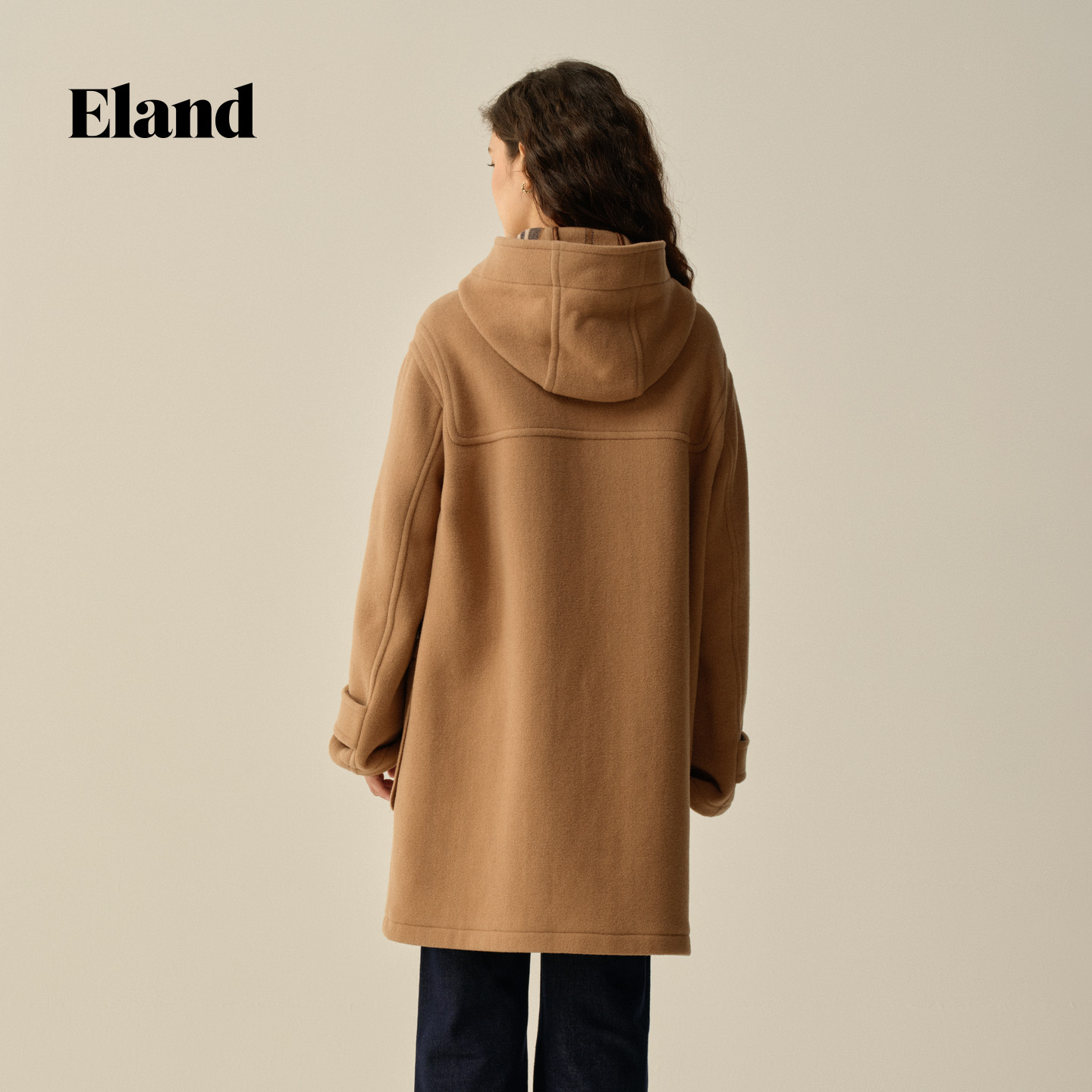 【美丽诺羊毛】ELand衣恋毛呢外套女牛角扣加厚羊毛大衣2025冬新