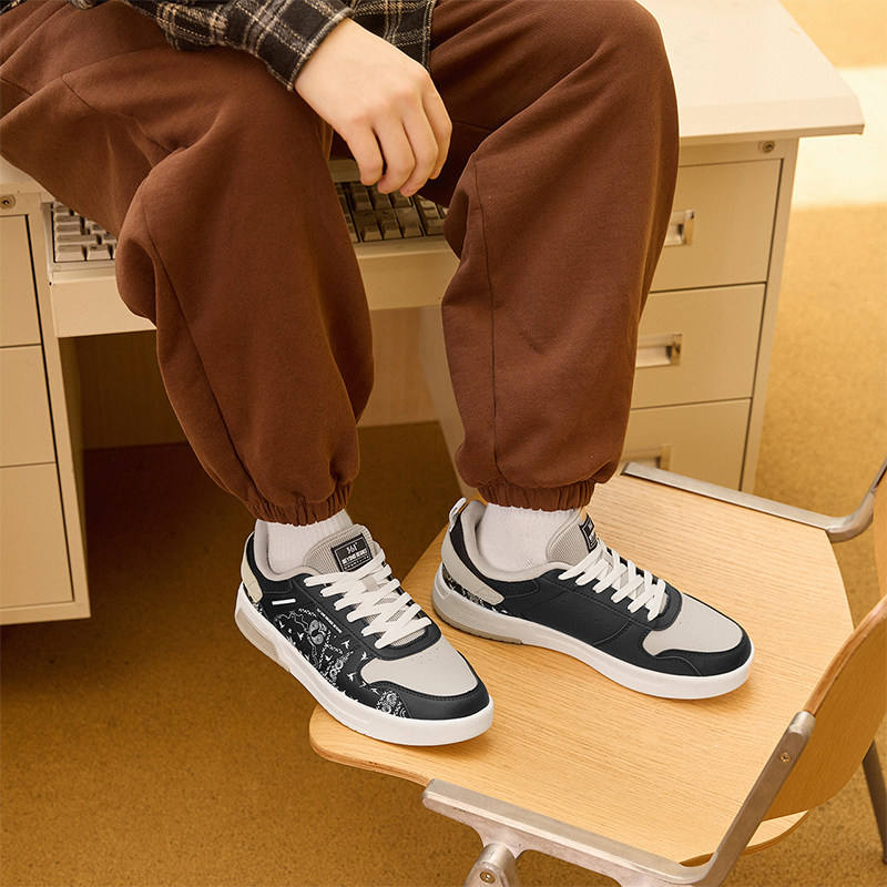 安踏男鞋运动鞋男款冬季新款官方旗舰正品黑色皮面男士跑步鞋子男