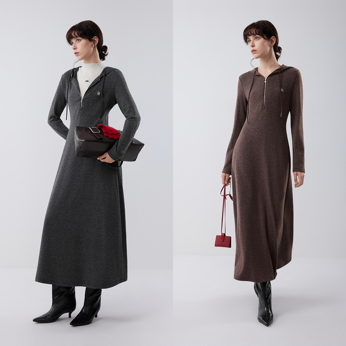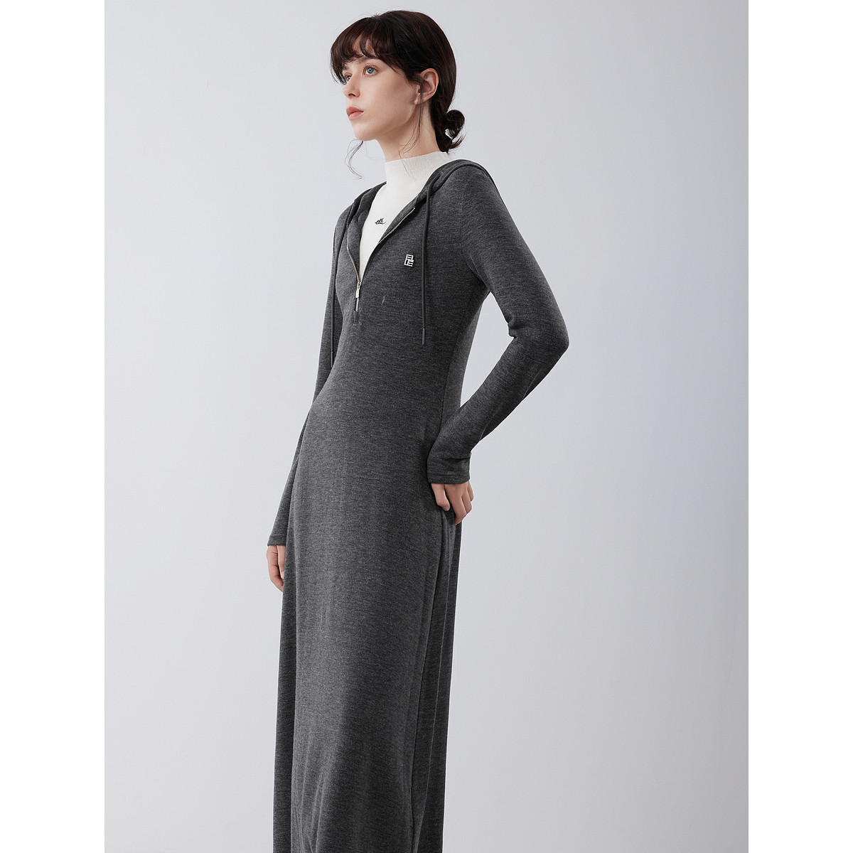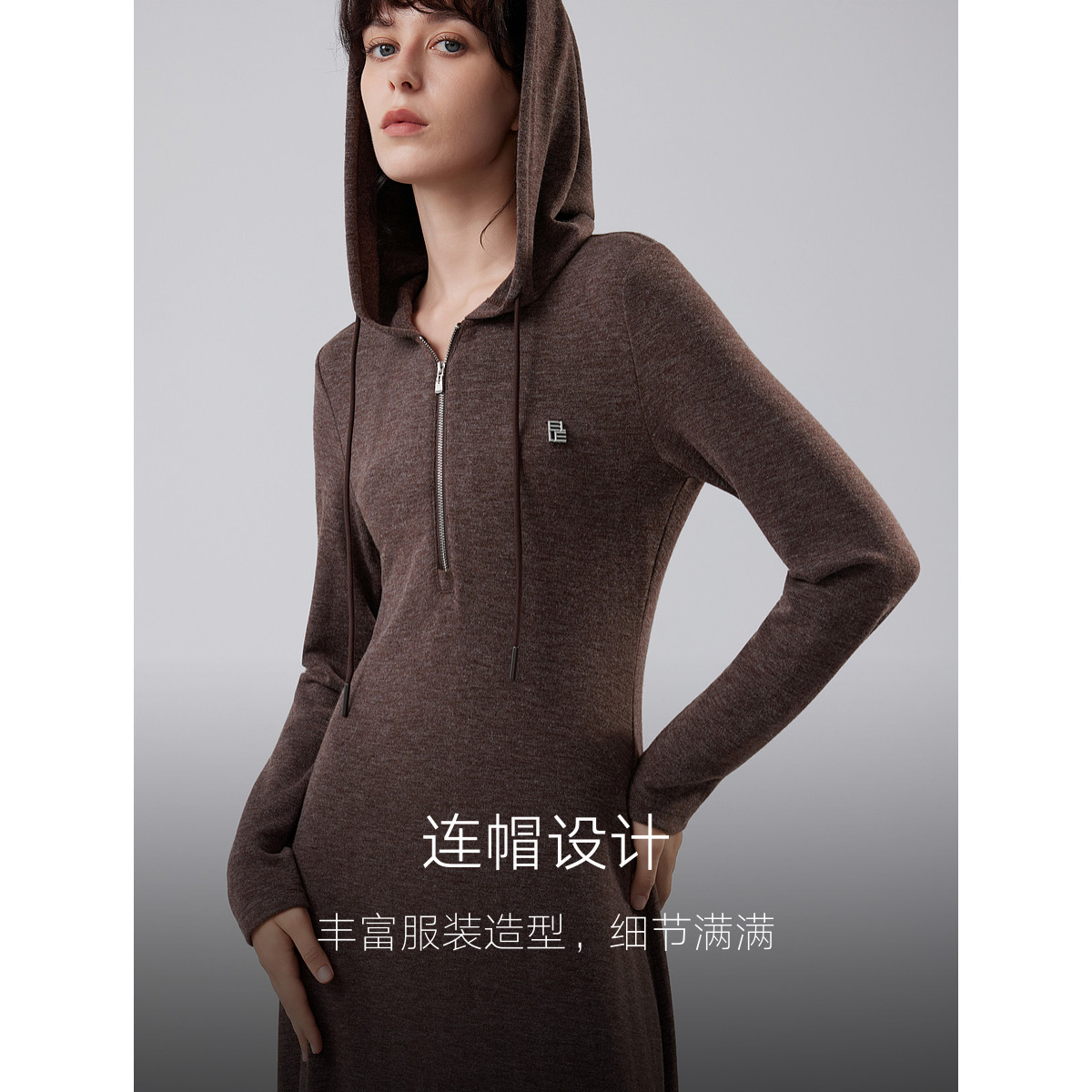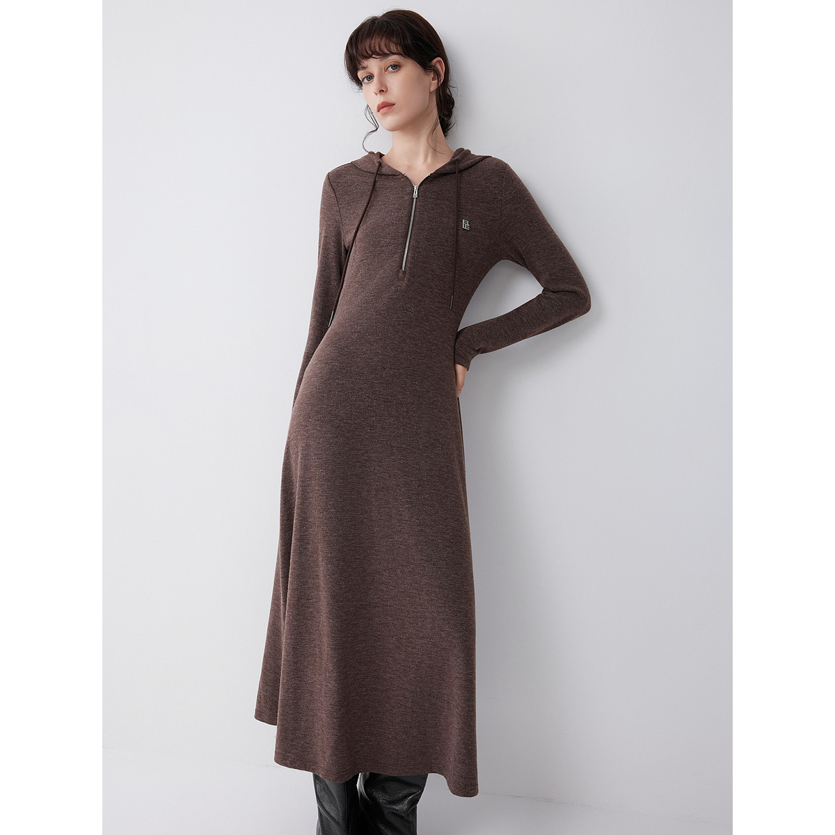 ELLE法式高级感针织连帽连衣裙女2025冬季新款优雅显瘦气质长裙子